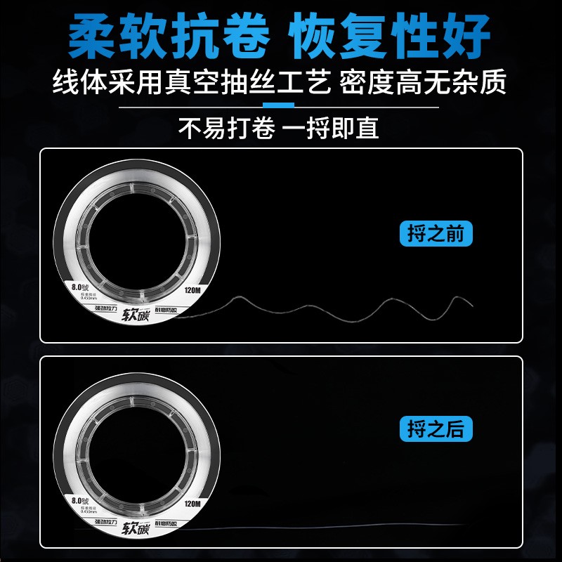 日本进口碳线路亚前导线专用碳素主线超柔软强拉力正品钓鱼线子线
