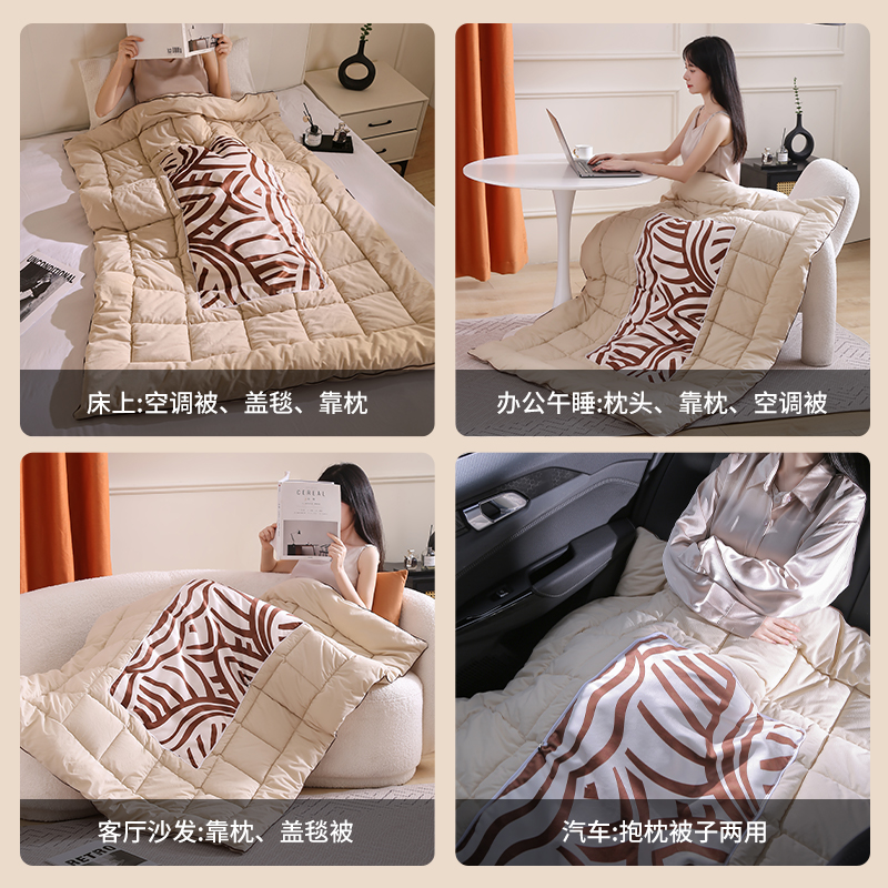 竹风入画抱枕被子二合一两用办公室客厅车载用高端折叠空调被加厚