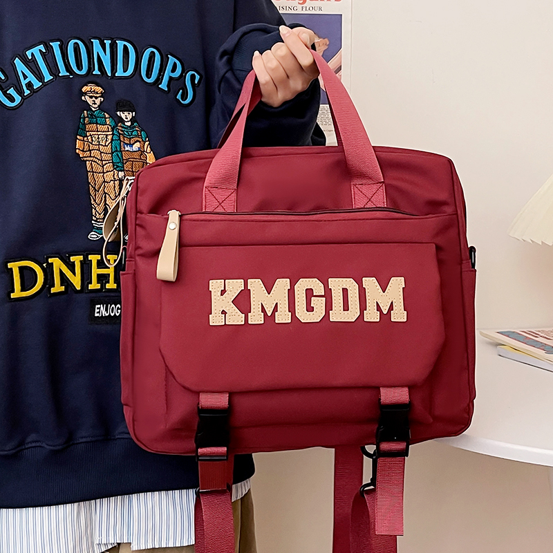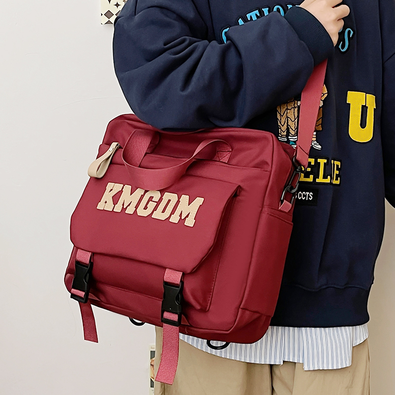 补习手提袋初中学生斜挎补课包儿童小学生大容量双肩包横版书包女