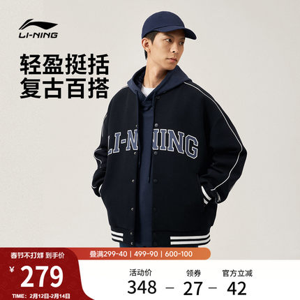 李宁棒球服男士冬季官方美式情侣卫衣复古宽松上衣运动夹克外套女