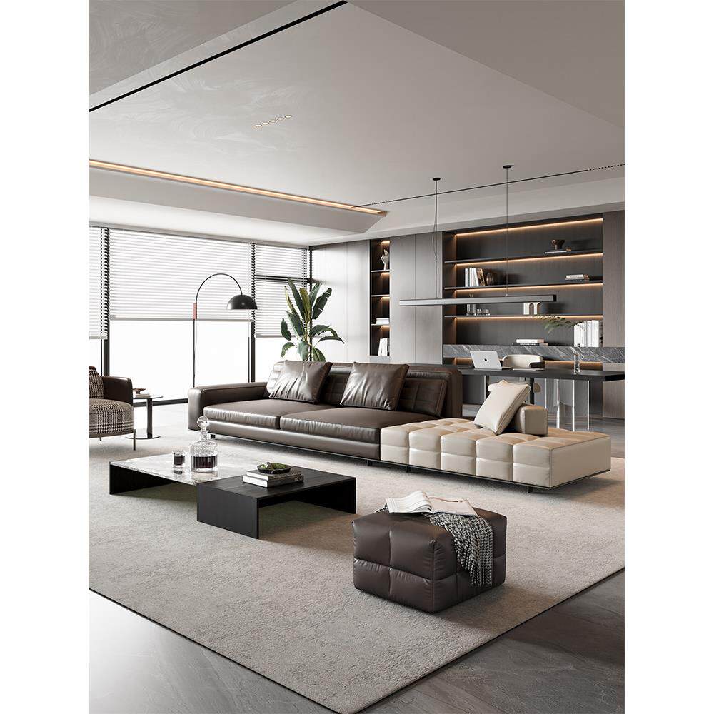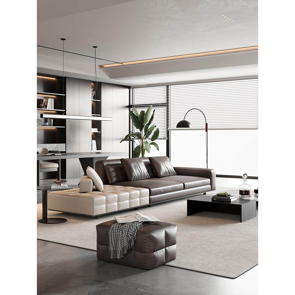 干元意式轻奢劳伦斯沙发皮艺大黑牛客厅2025新款别墅大平层商务