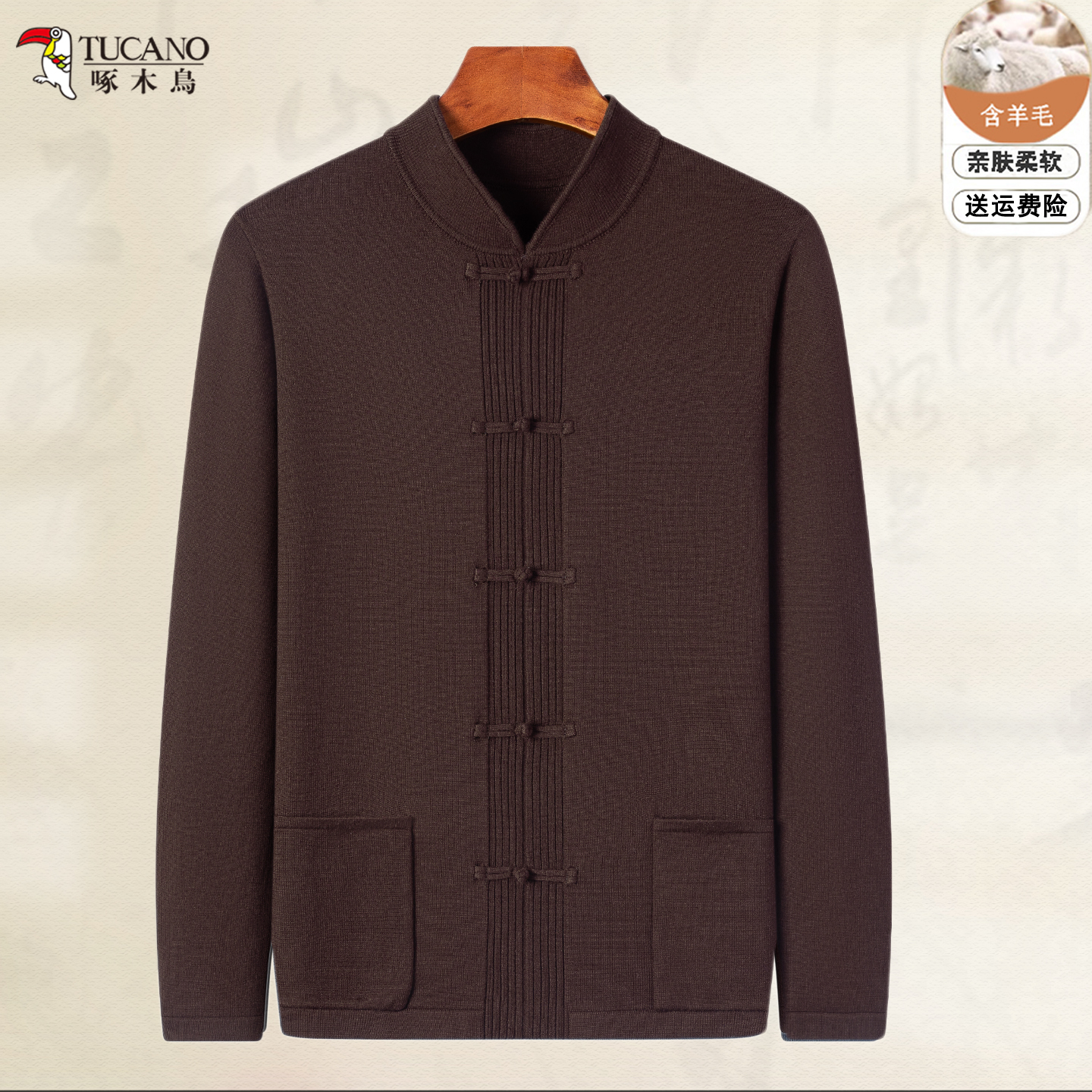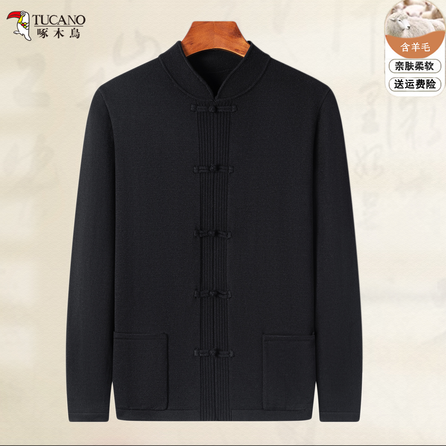 啄木鸟唐装男中老年毛衣长袖外套中国风爸爸加厚爷爷春秋季针织