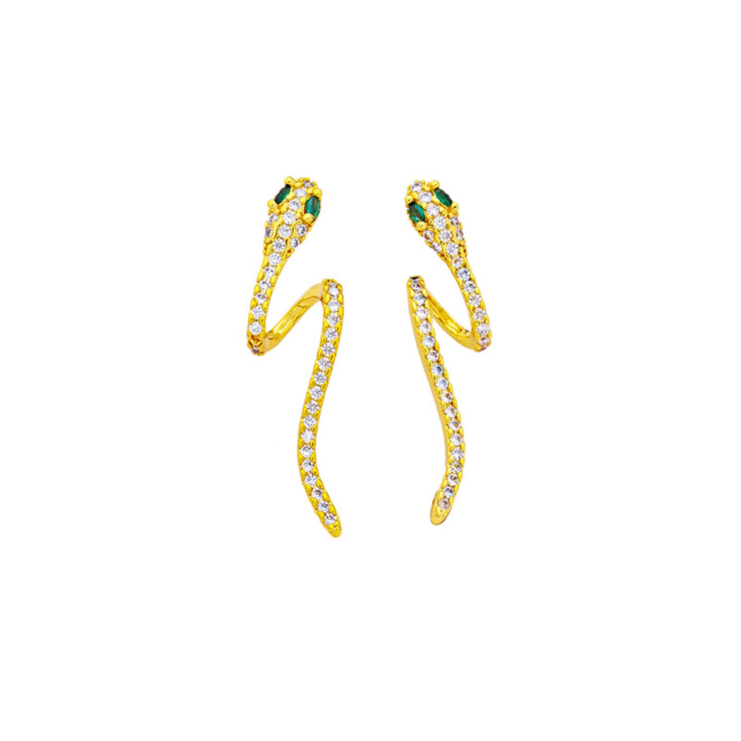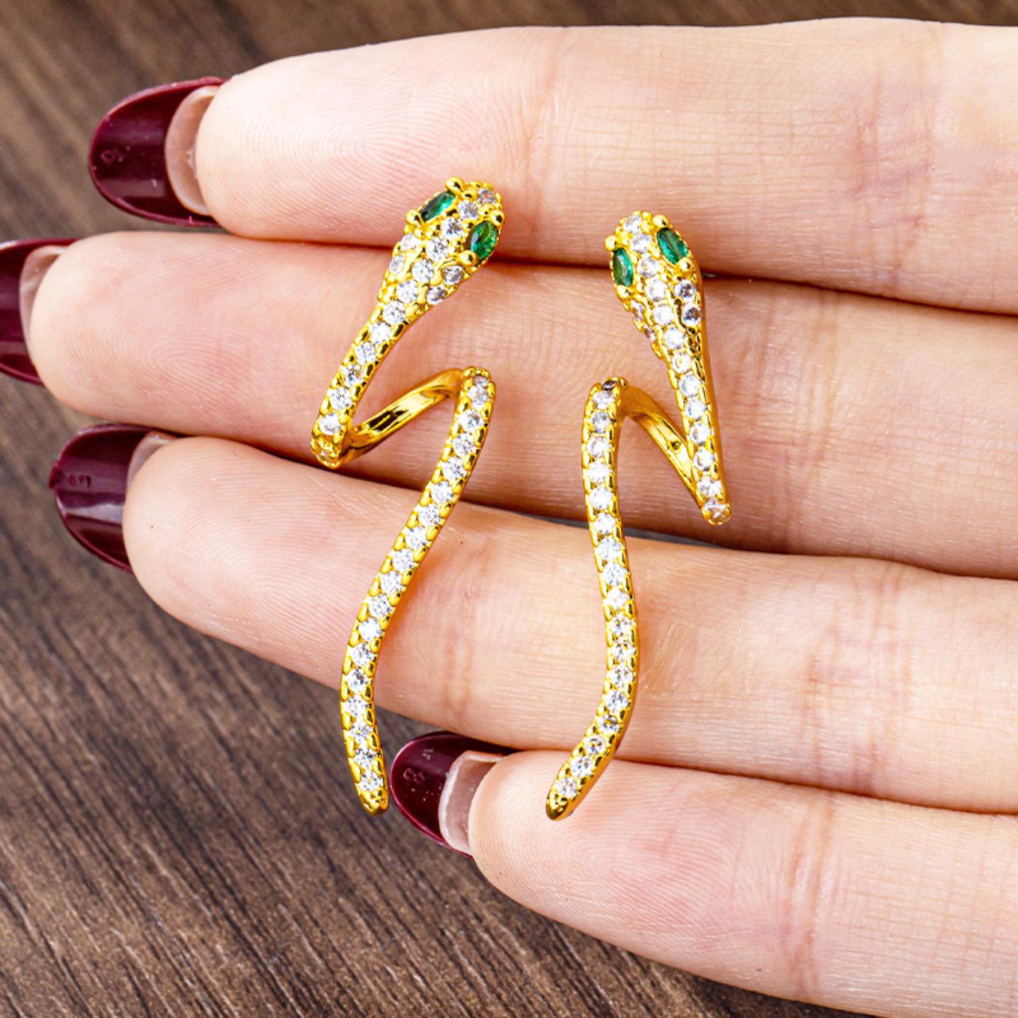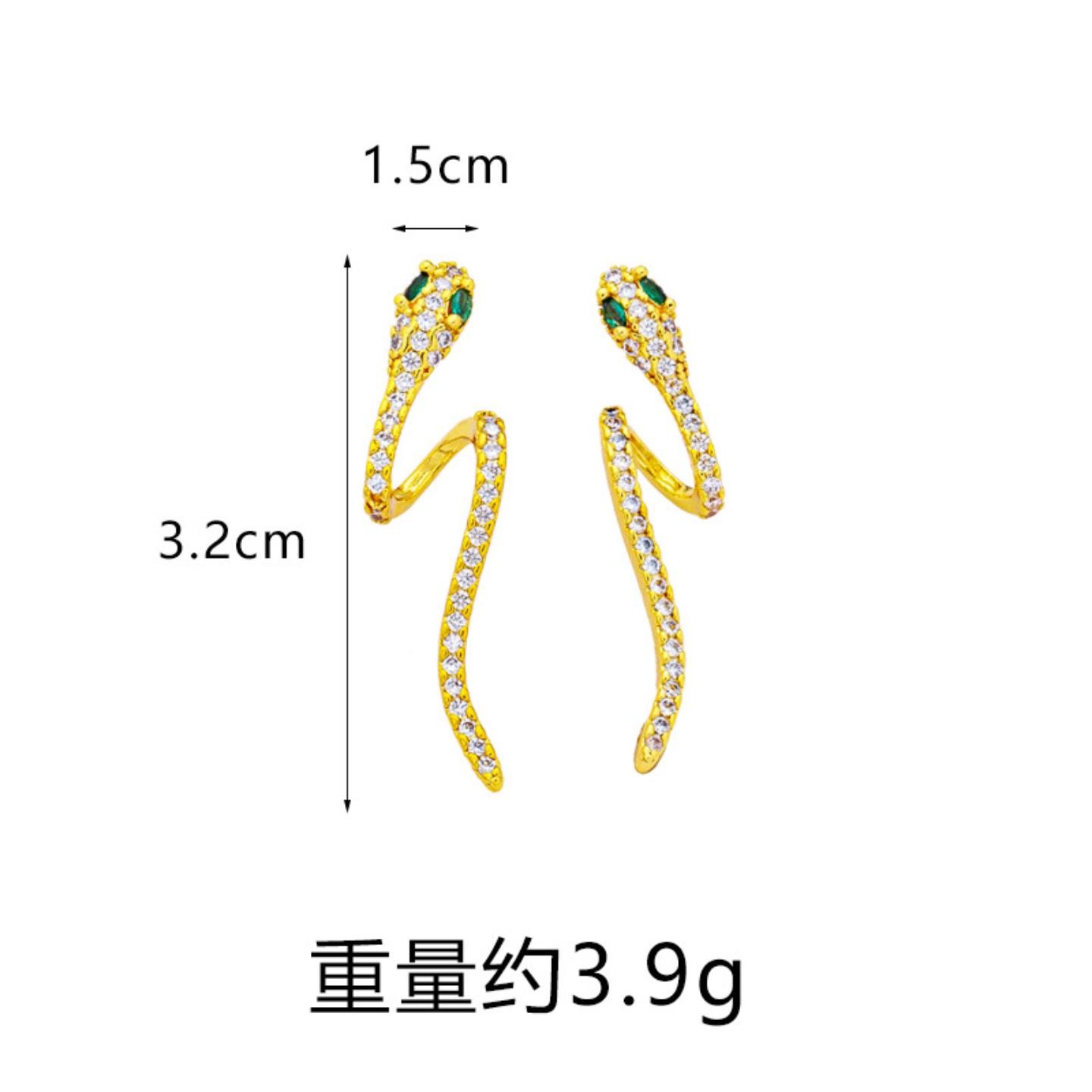 欧美风满钻灵蛇耳钉女越南沙金简约线条耳饰潮流久不掉色饰品