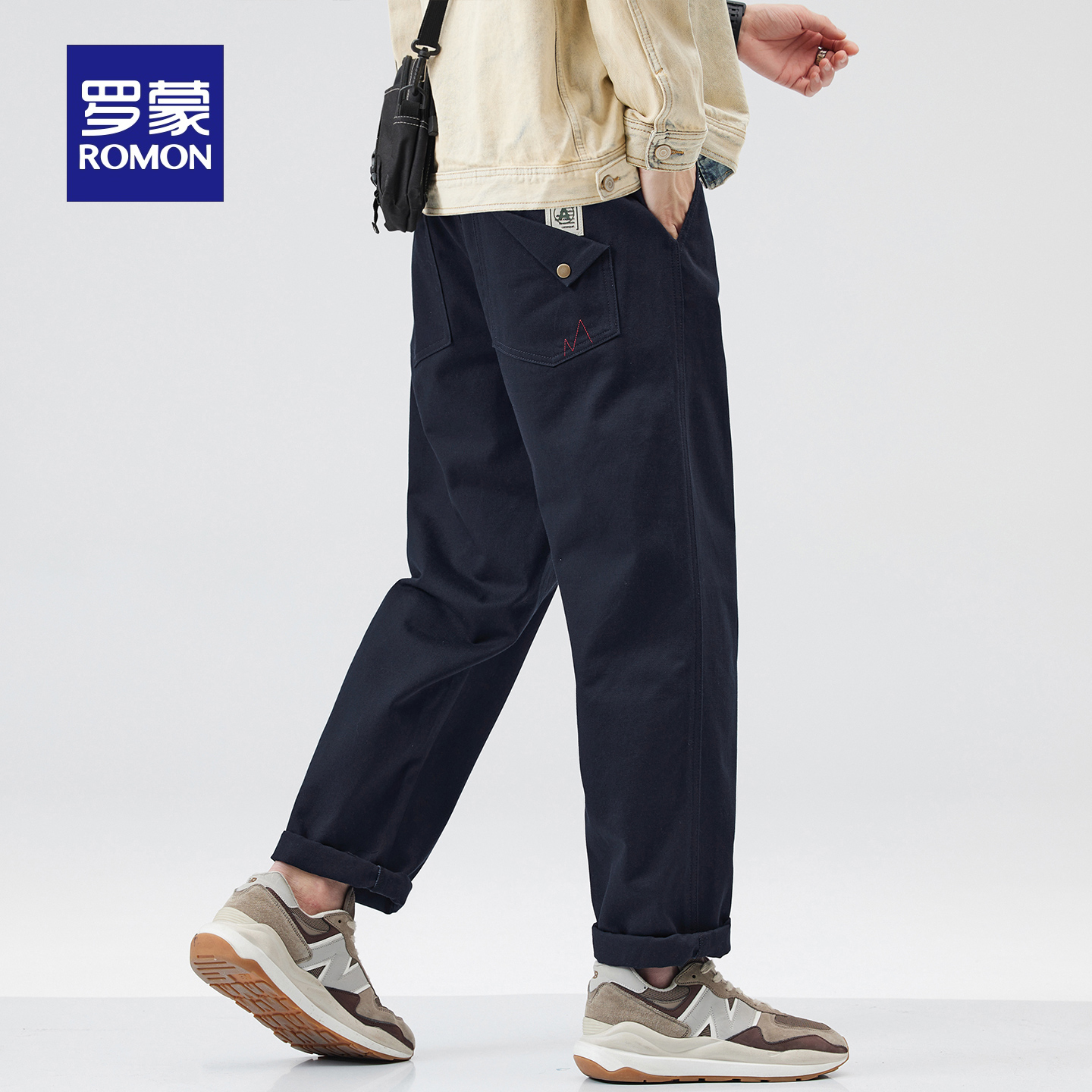 罗蒙纯棉直筒休闲裤男士宽松长裤