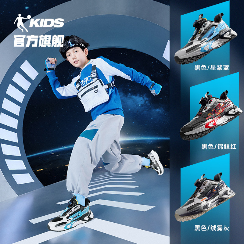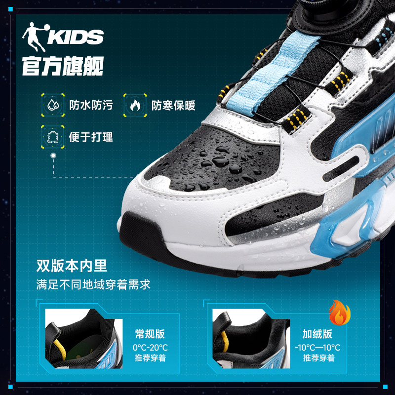 启航乔丹童鞋男童运动鞋2024秋冬款中大童皮面旋钮扣休闲鞋老爹鞋