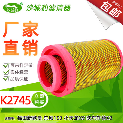 K2745适配福田新欧曼东风153小天龙陕汽轩德X9空气滤芯X3空滤清器