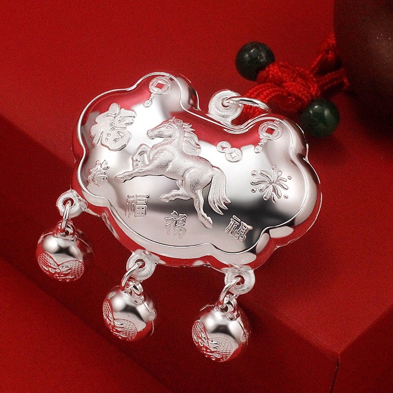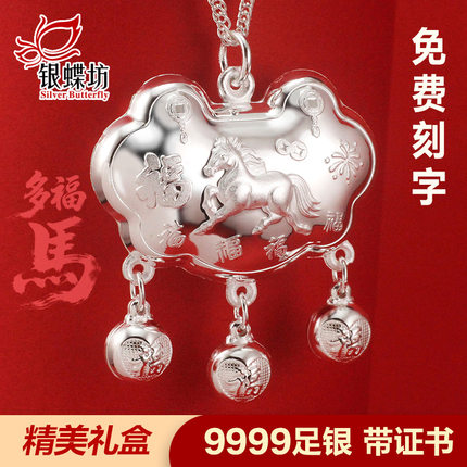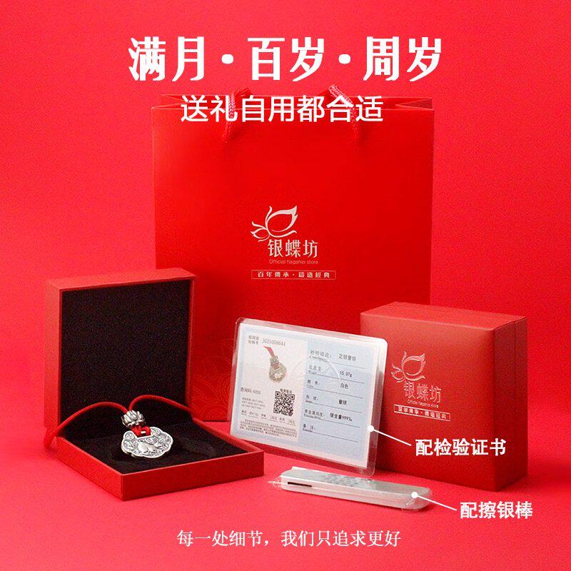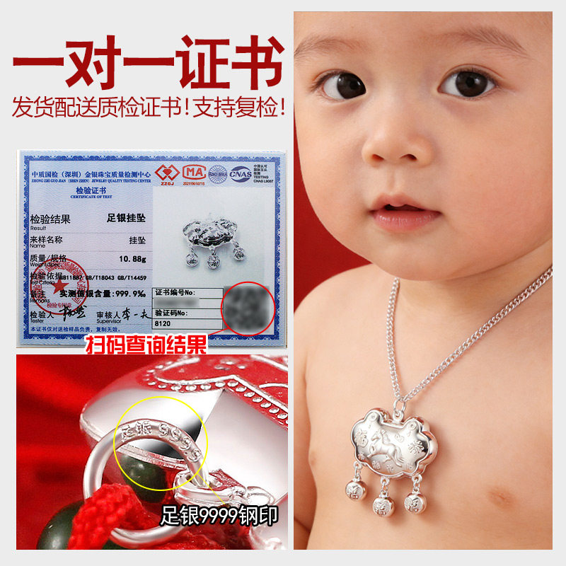 马年9999纯银婴儿宝宝长命锁足银平安锁满月宝宝银饰儿童生日礼物