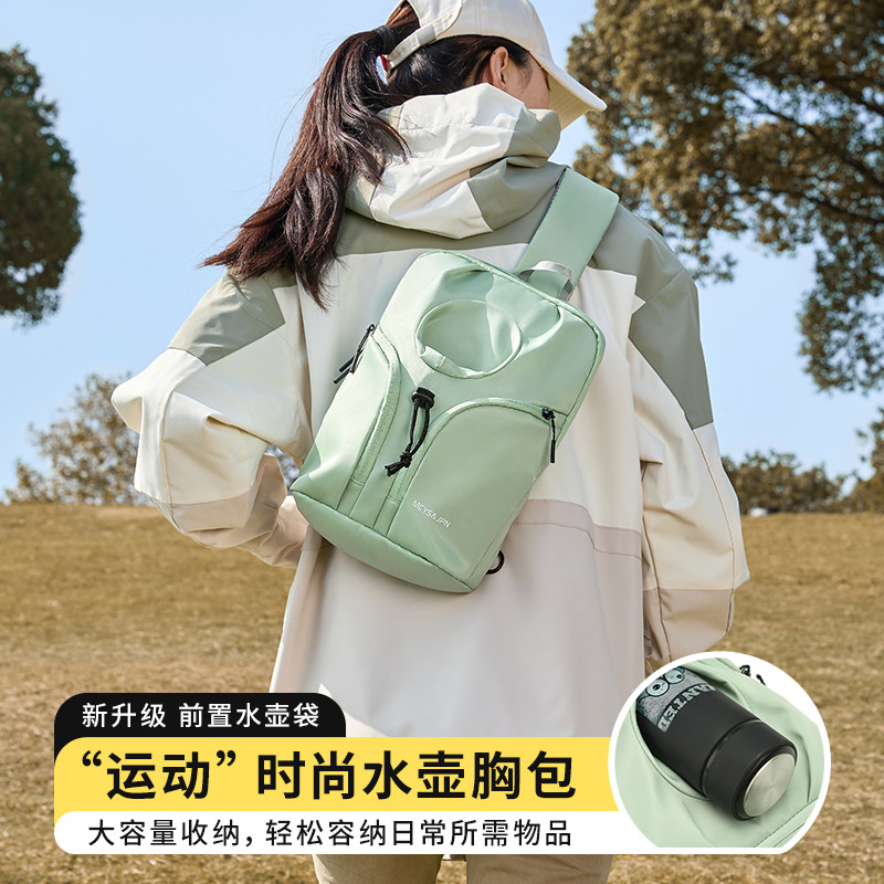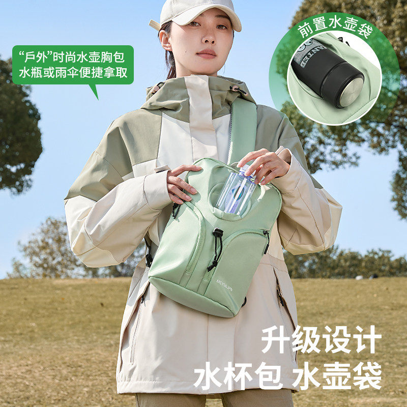斜挎包女大容量轻便防水运动户外单肩包水壶水杯胸包男外出便携包