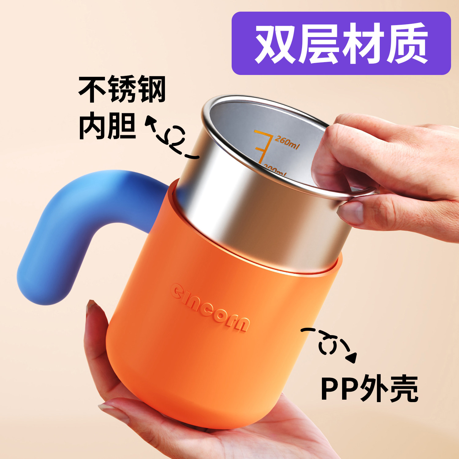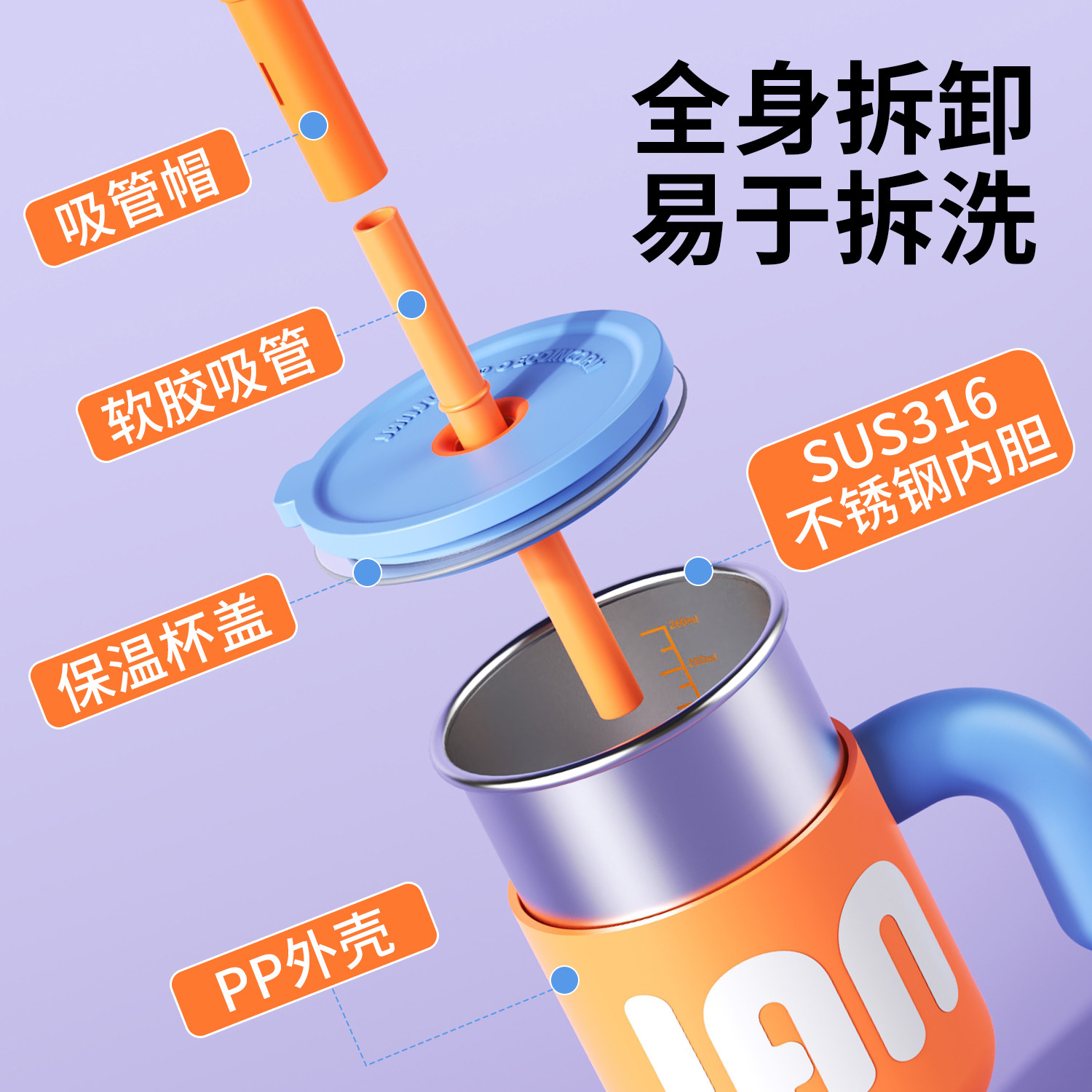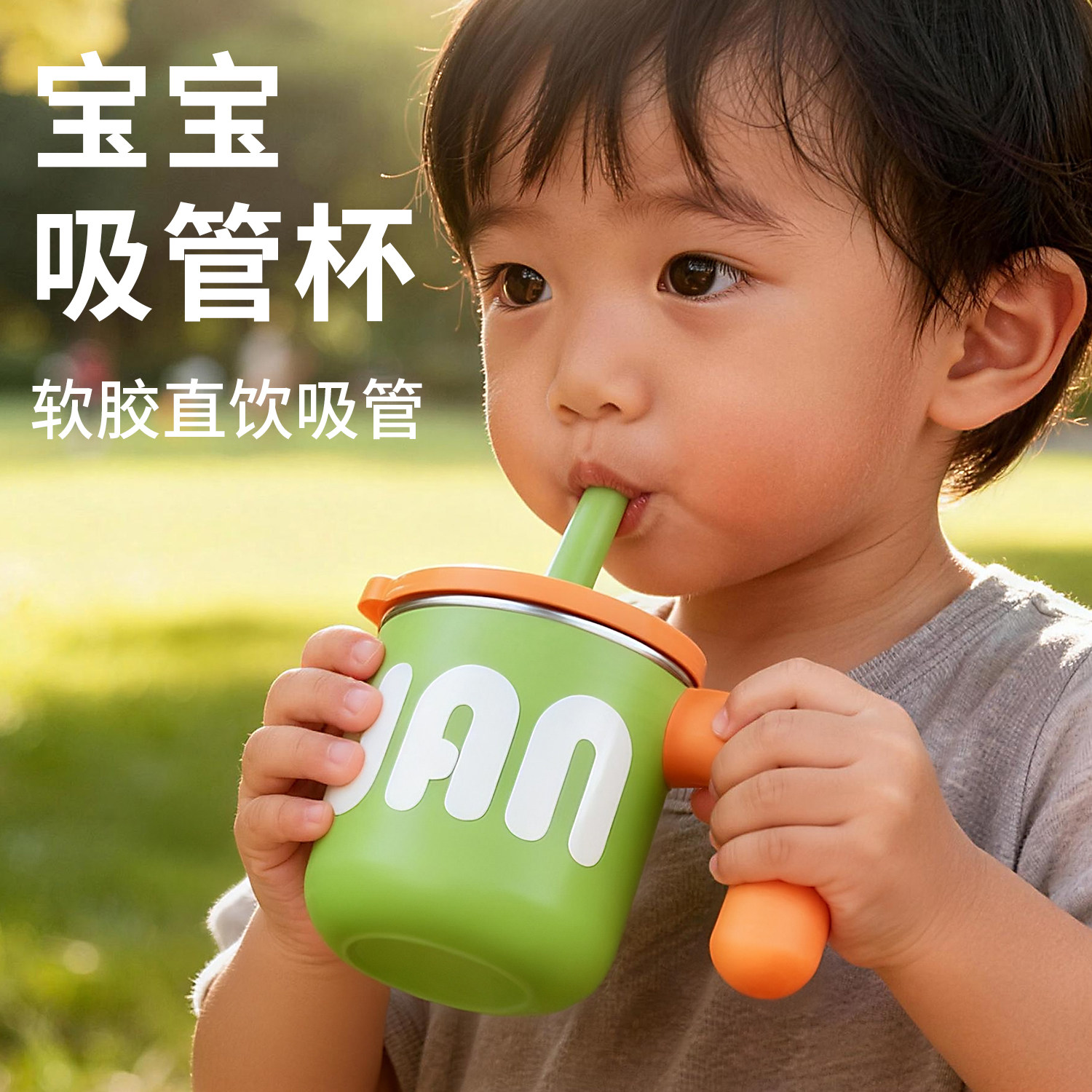 儿童吸管杯卡通316不锈钢带手柄防摔宝宝喝水杯小孩牛奶杯