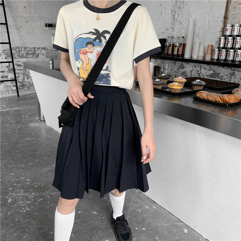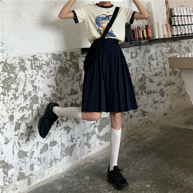中长款春秋百褶裙女大码遮胯高腰学院风显瘦半身裙防走光a字短裙