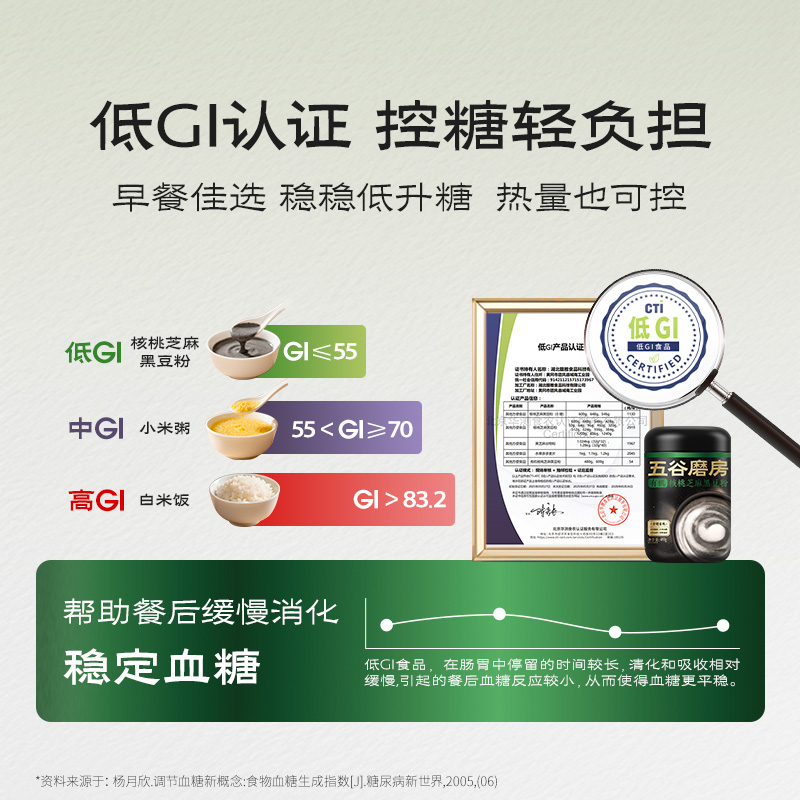 五谷磨房有机核桃芝麻黑豆粉五黑粉黑芝麻糊代餐粉营养早餐中老年