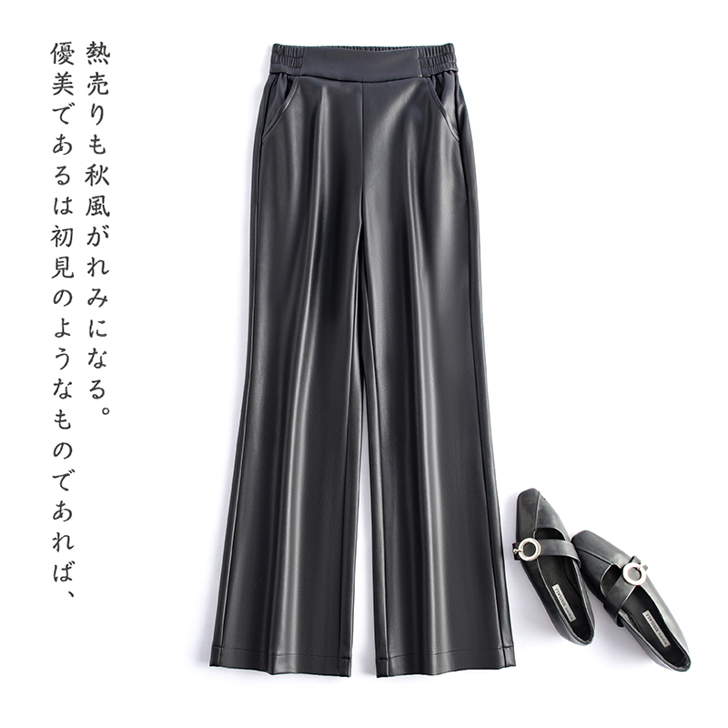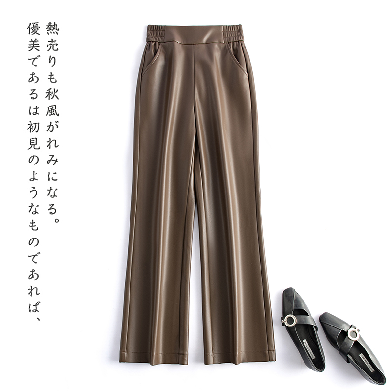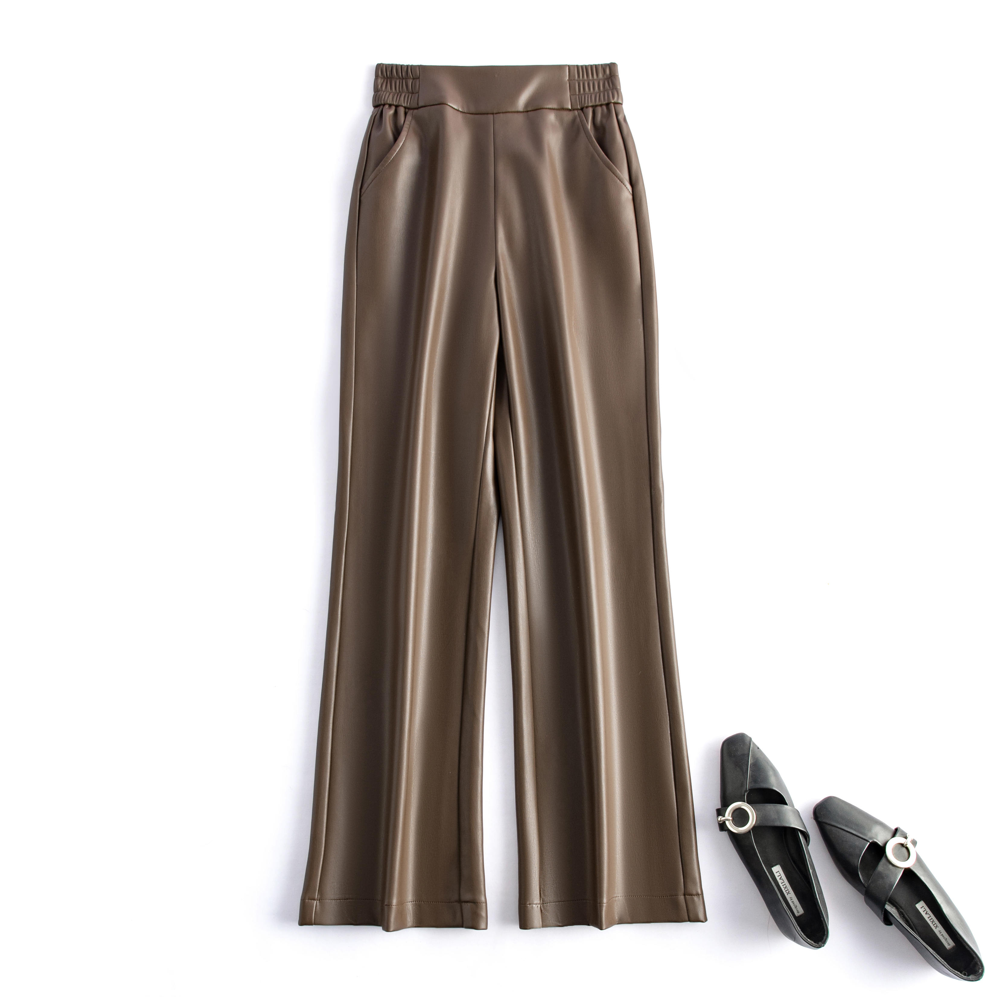 真皮皮裤女高腰直筒微喇裤休闲裤