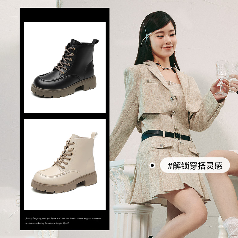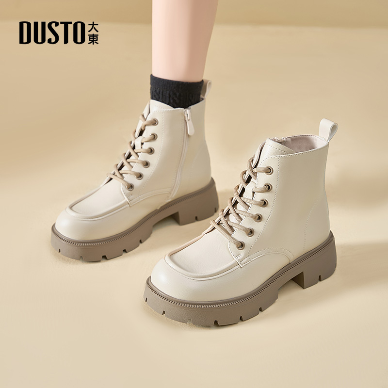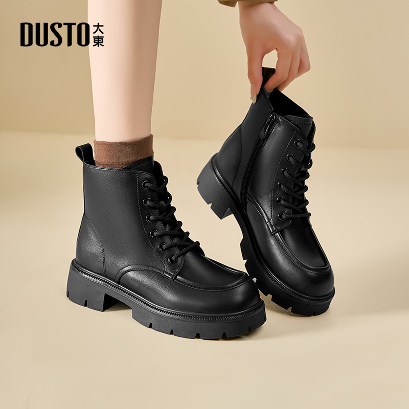大东2025冬季新款女鞋休闲百搭粗跟中筒马丁靴简约复古中跟女靴子