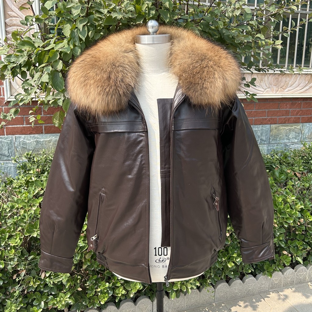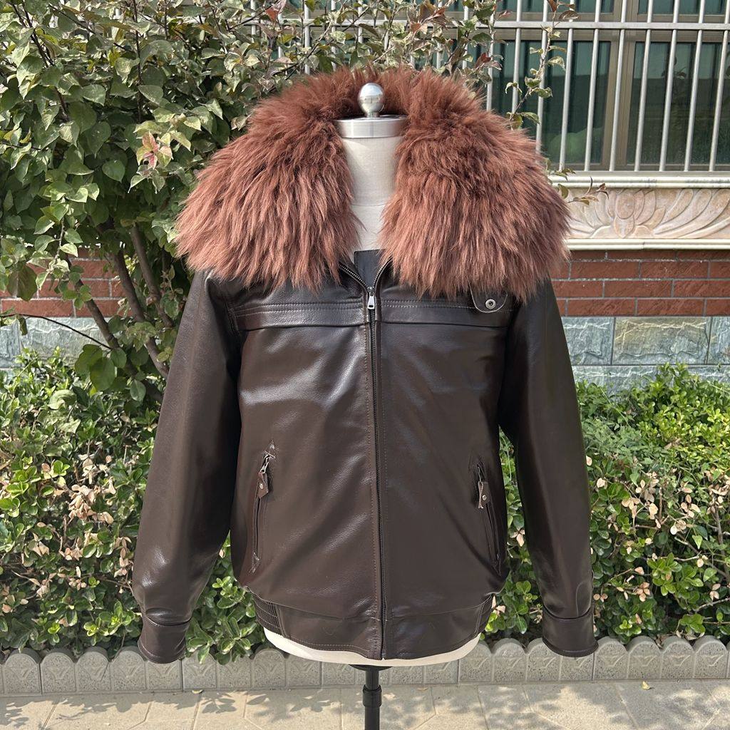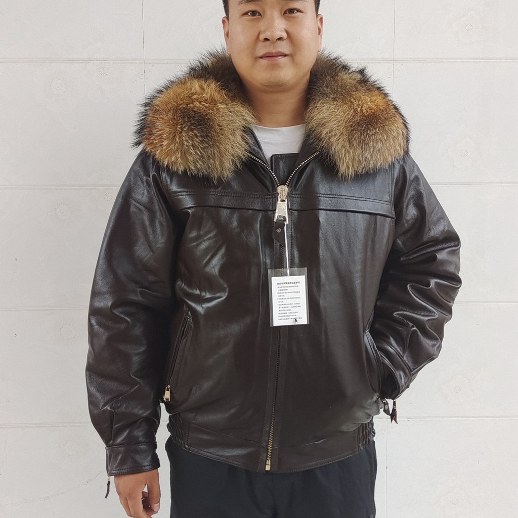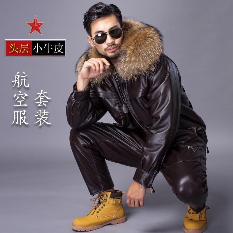 牛皮真皮皮衣皮裤套装空军飞行员皮夹克男哈雷机车皮衣加棉棒球服