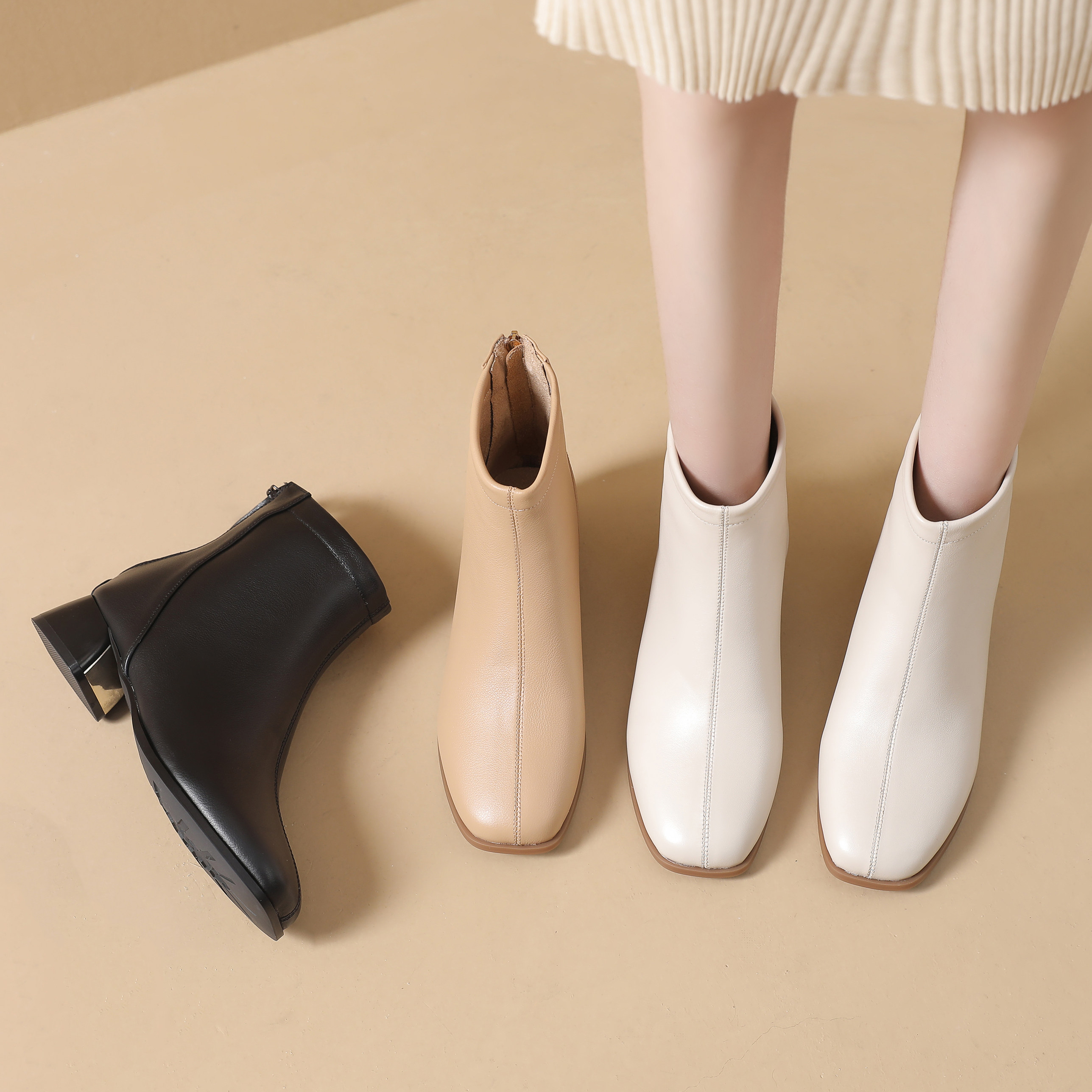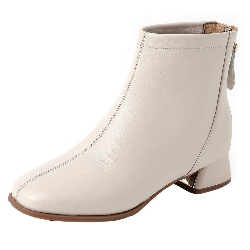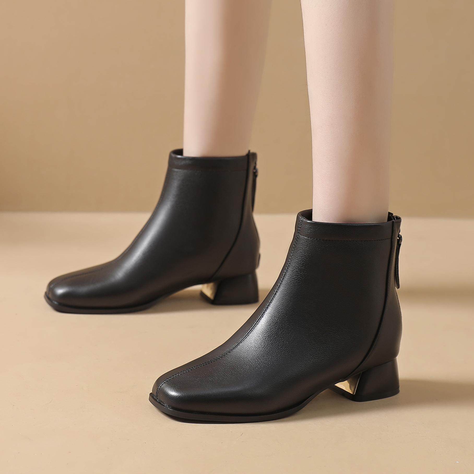 小码短靴女2024秋冬新款31 32 33真皮中跟方头气质加绒保暖女靴子