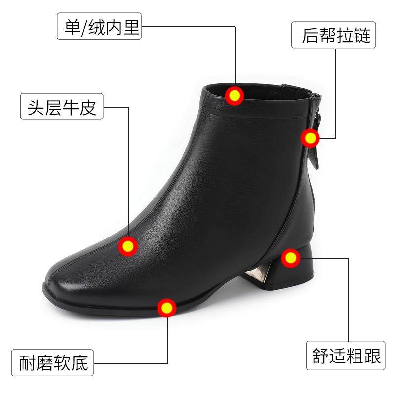 短靴中跟真皮小码方头新款女靴子