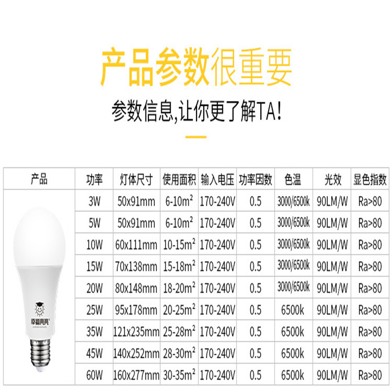 幸福亮亮led灯泡e27螺口3w5w10w15w20w客厅灯餐厅防水梨型球泡灯