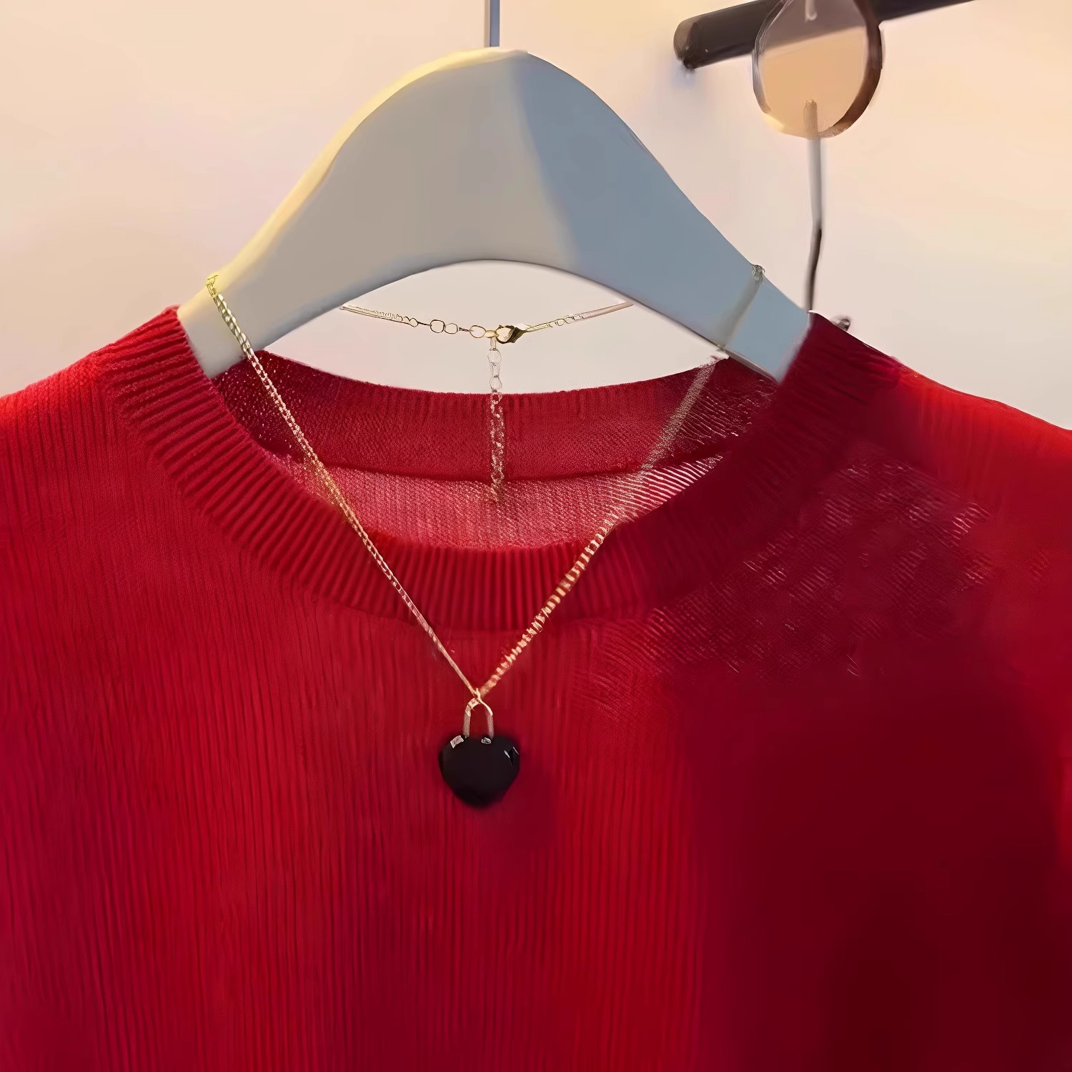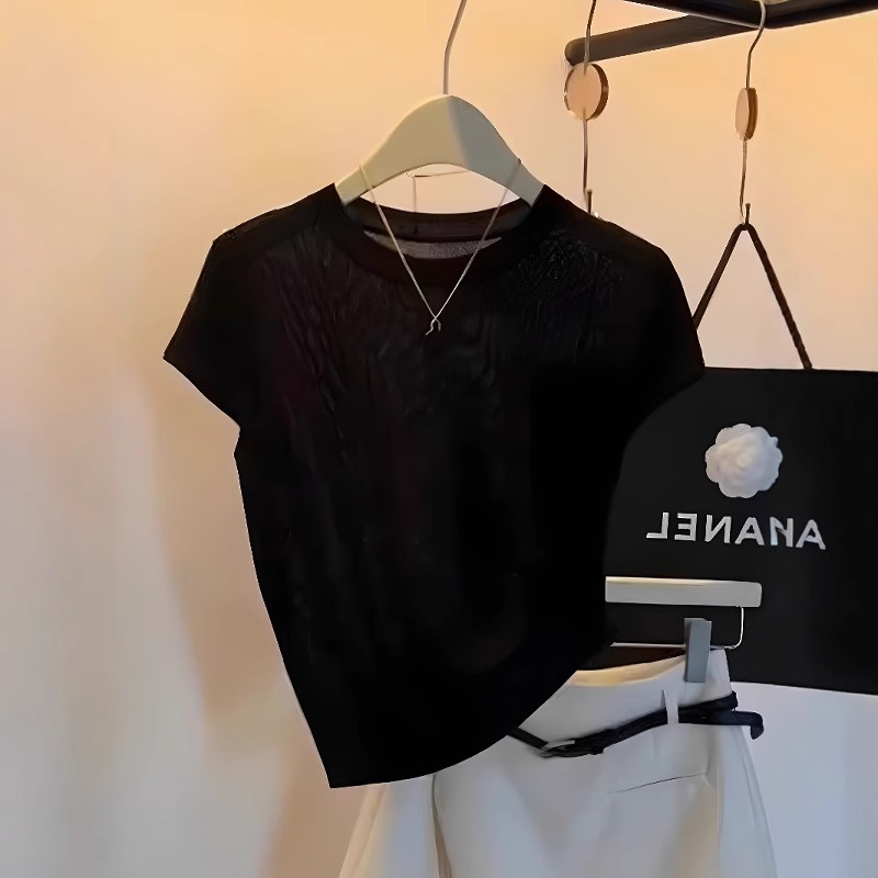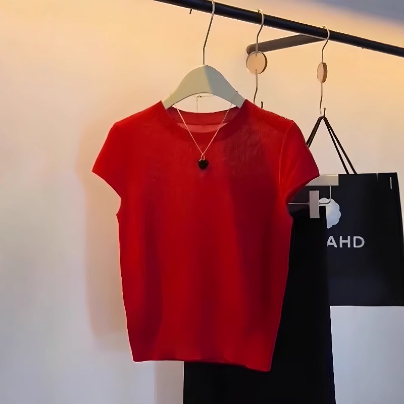 韩版ins潮流红色针织短袖t恤女2025夏季新款洋气减龄打底衫上衣薄