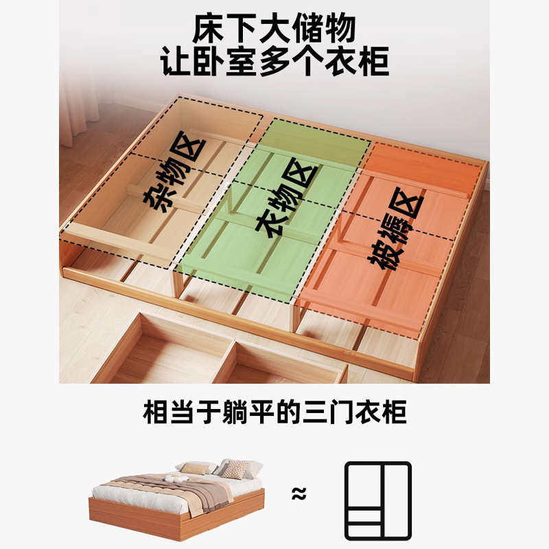 实木床现代简约无床头排骨架单人床带抽屉储物双人床儿童床榻榻米