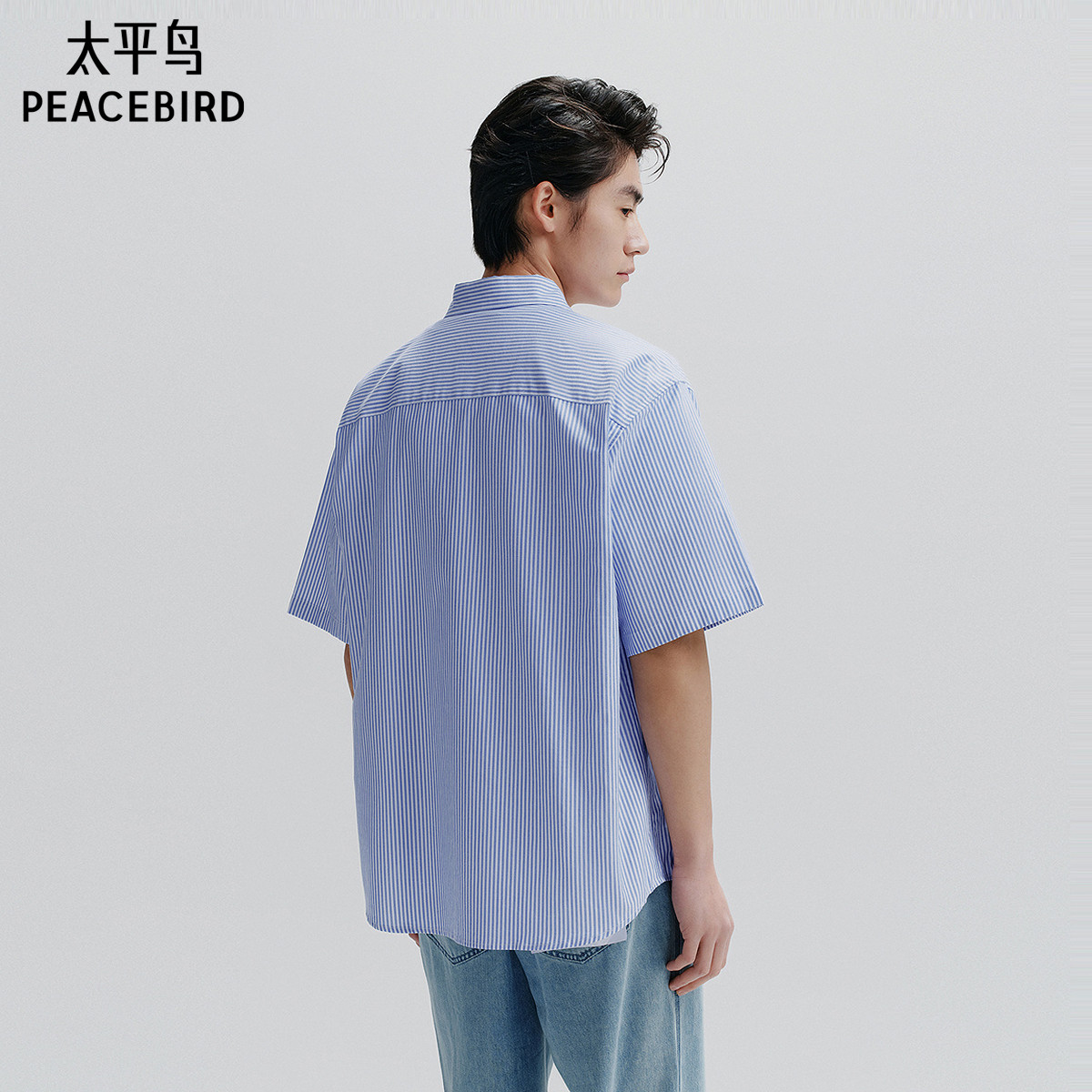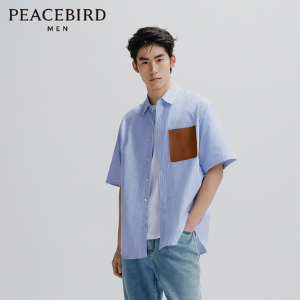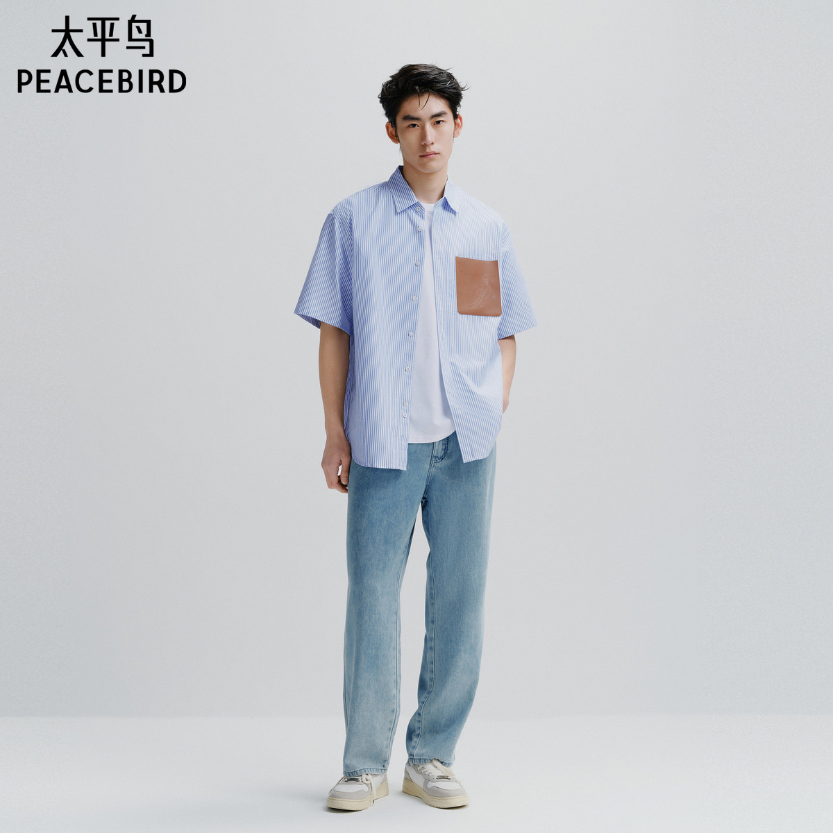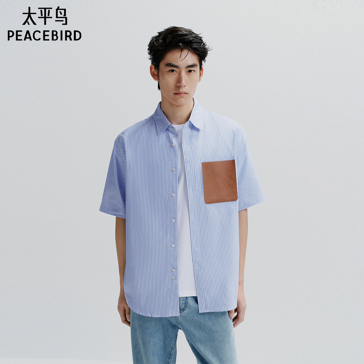 太平鸟男装 休闲衬衫春夏潮流舒适时尚衬衫品质纯棉外穿式衬衫潮