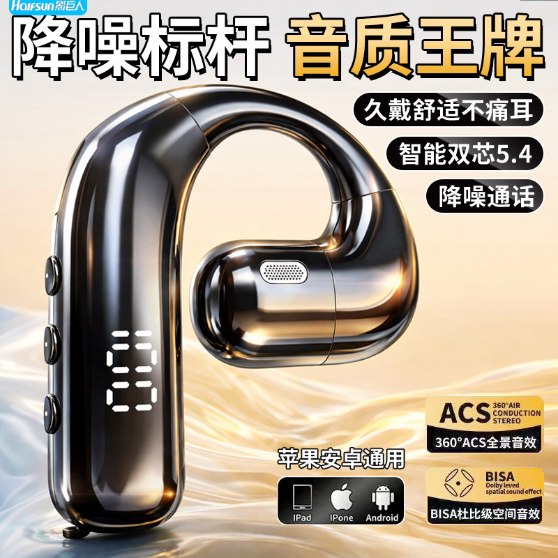 影巨人新款2026无线蓝牙耳机商务骑行不入耳式传导耳挂式耳机防水