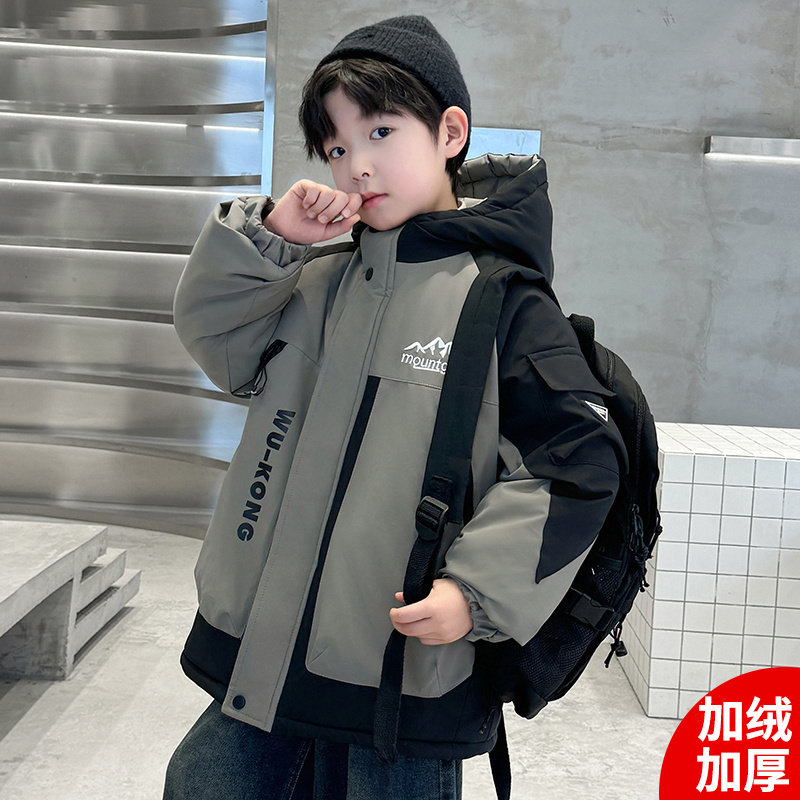男童棉衣外套冬季加厚2025新款炸街男孩冬装棉袄加绒儿童派克棉服