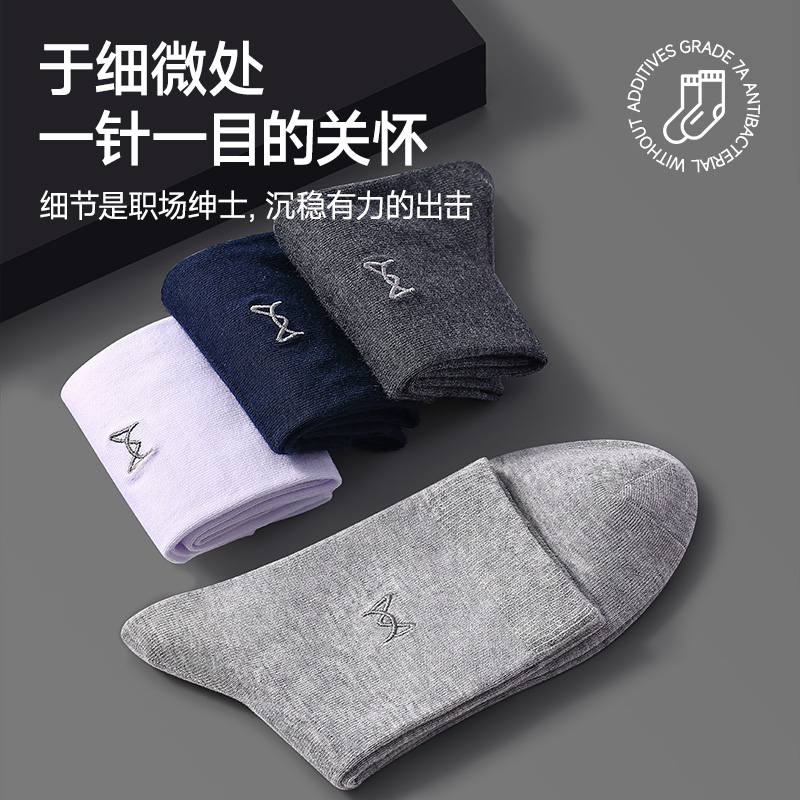 猫人男士袜子男款纯棉防臭抗菌中筒袜2025新款秋季商务黑色长袜