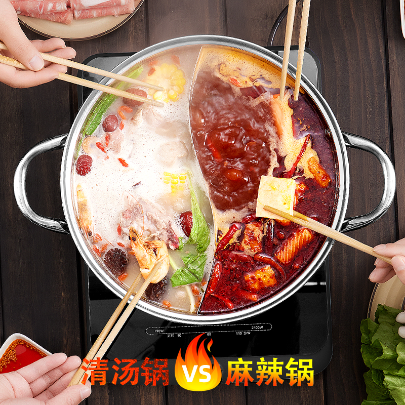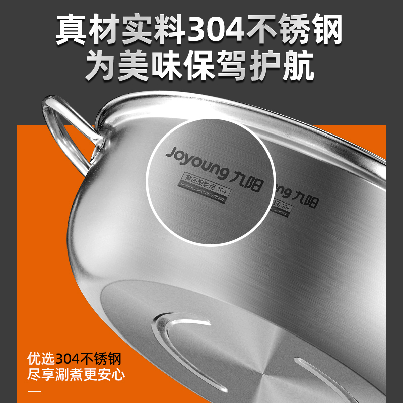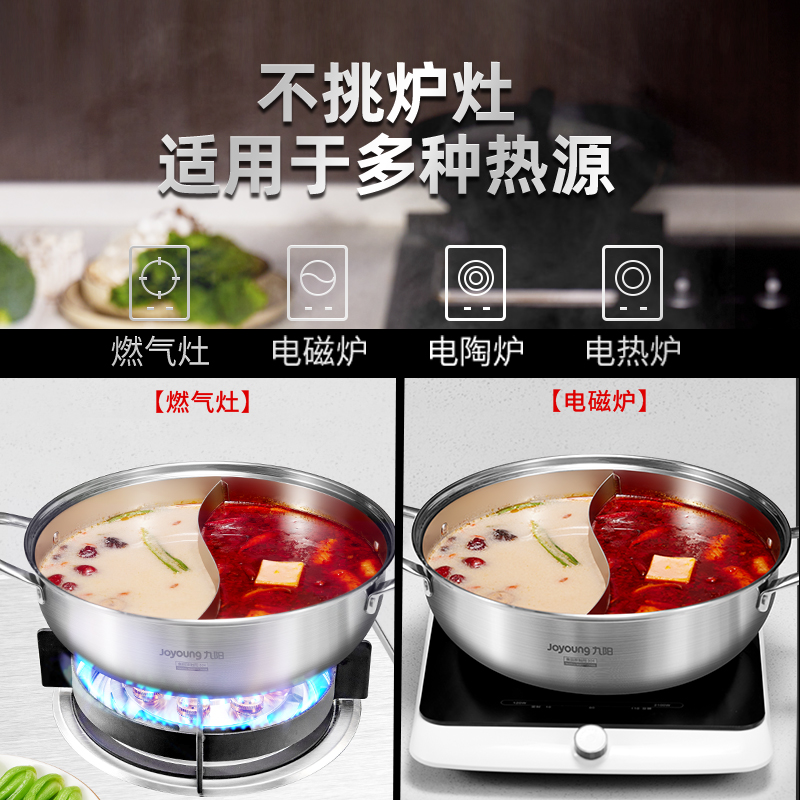 九阳鸳鸯锅清汤锅304不锈钢大容量火锅家用磁炉通用加厚0涂层锅具