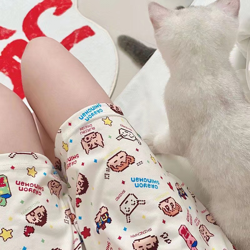 可爱卡通动物乐园印花睡裤女夏季新款高腰家居阔腿短裤宽松休闲裤