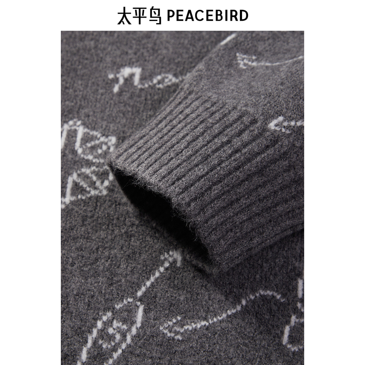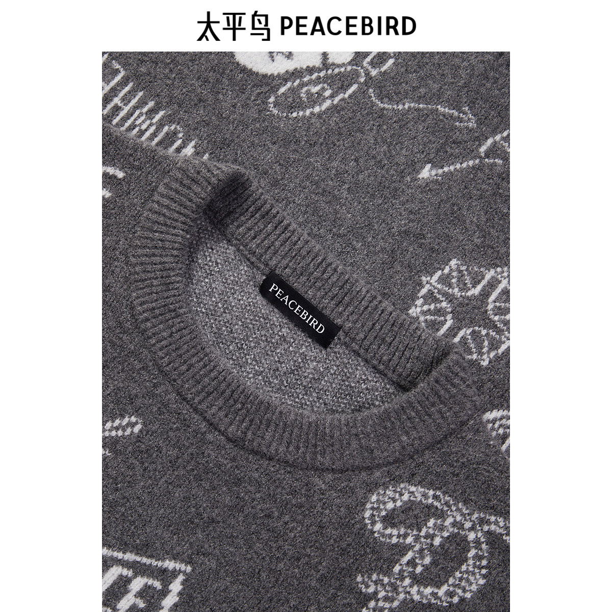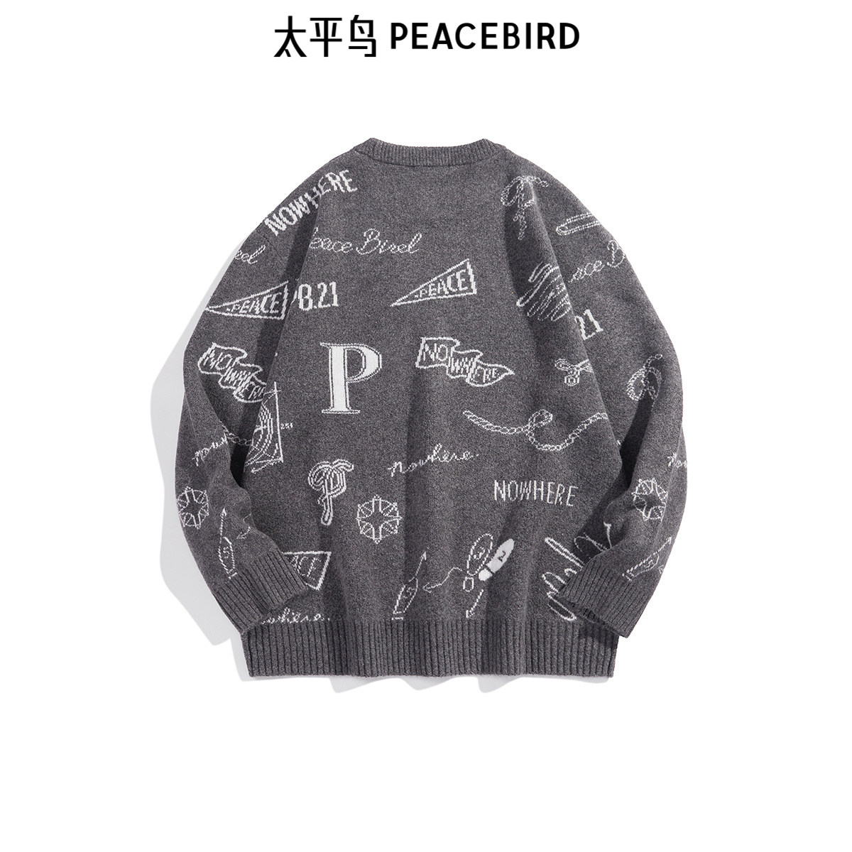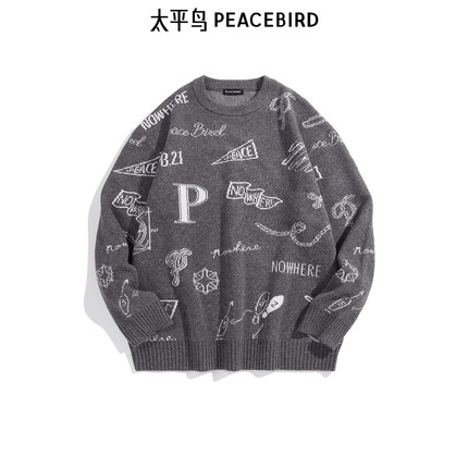太平鸟男装 潮流满印圆领毛衣秋季青年宽松时尚针织衫外套