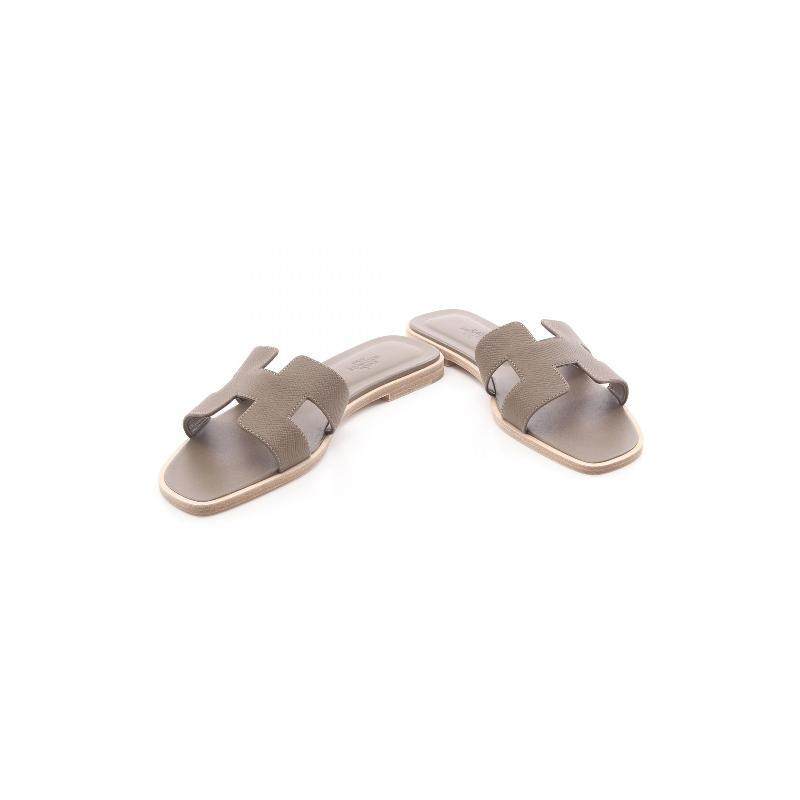 中古Hermes爱马仕女S级99新sandals凉鞋牛皮鞋灰色