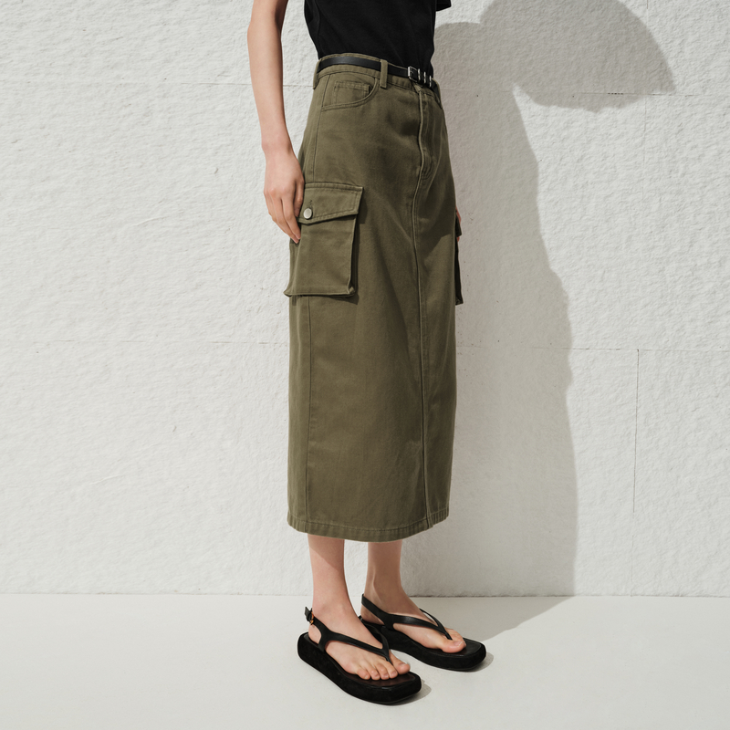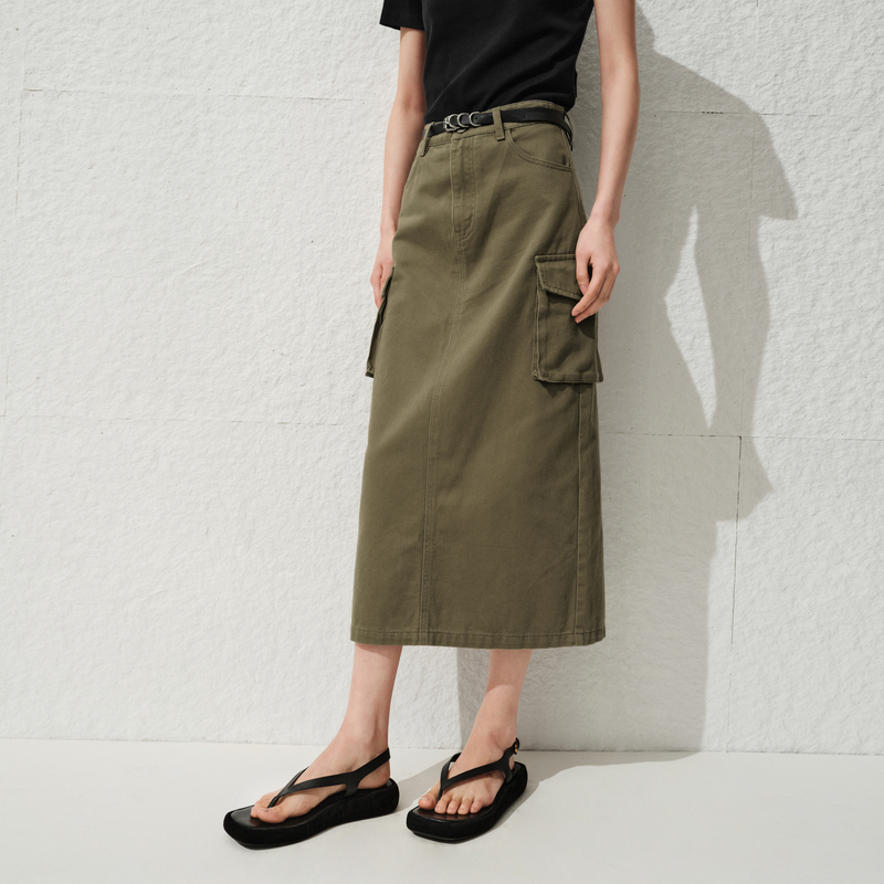 艾诺丝雅诗2024夏季新品时尚全棉工装直筒裙中长裙半身裙30423510