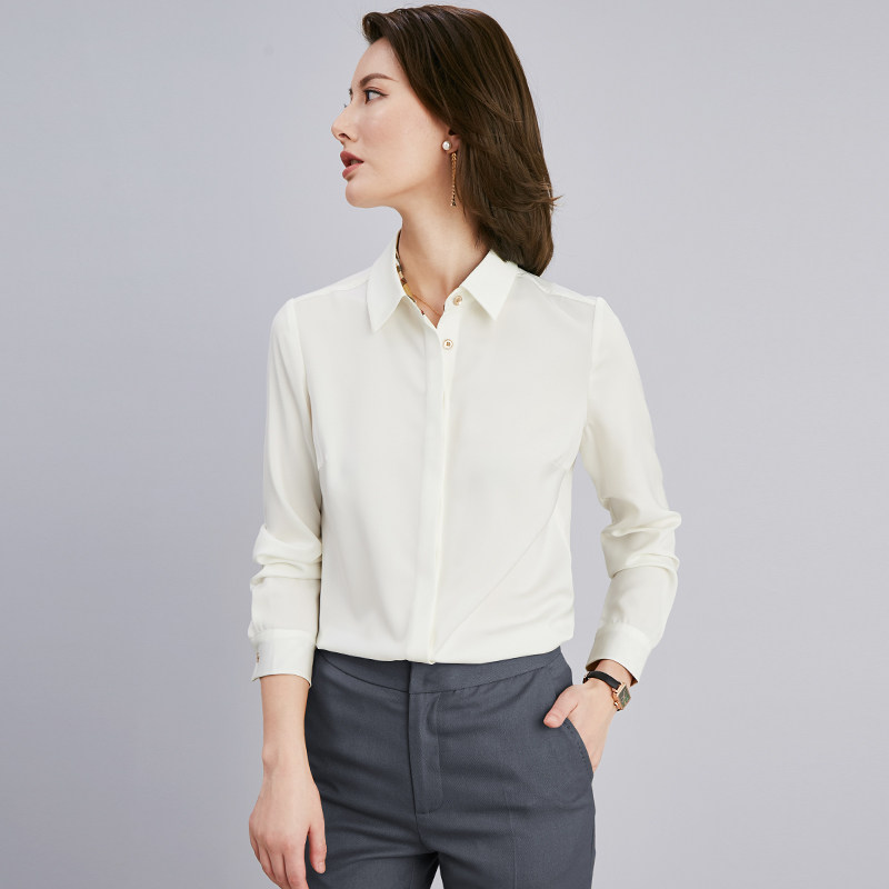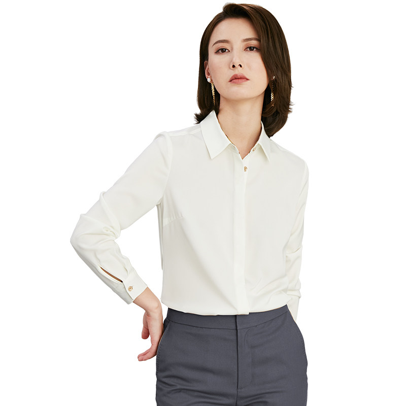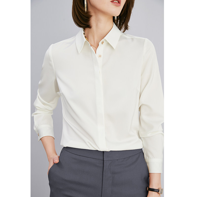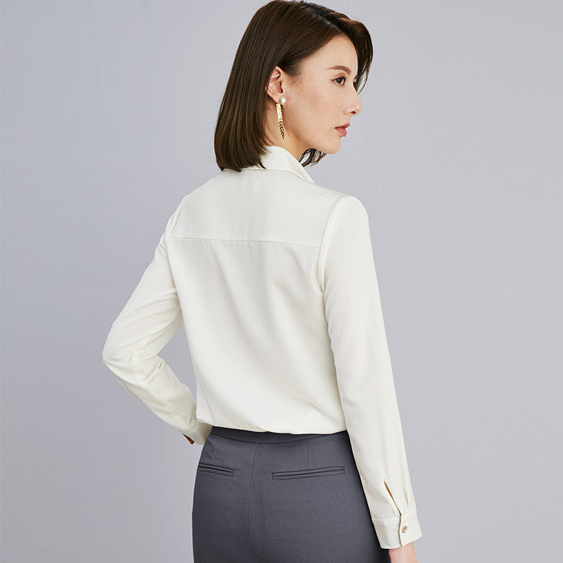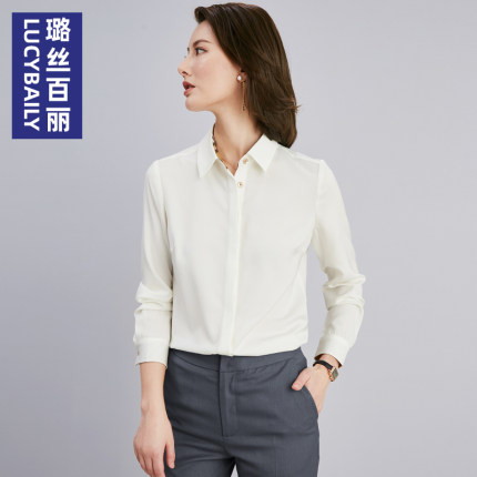 璐丝百丽白色雪纺衬衫女长袖春季洋气时尚衬衣职业气质有垂感上衣