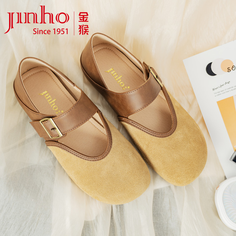 金猴复古法式女春季新款休闲软底懒人一脚蹬包头鞋气质撞色勃肯鞋