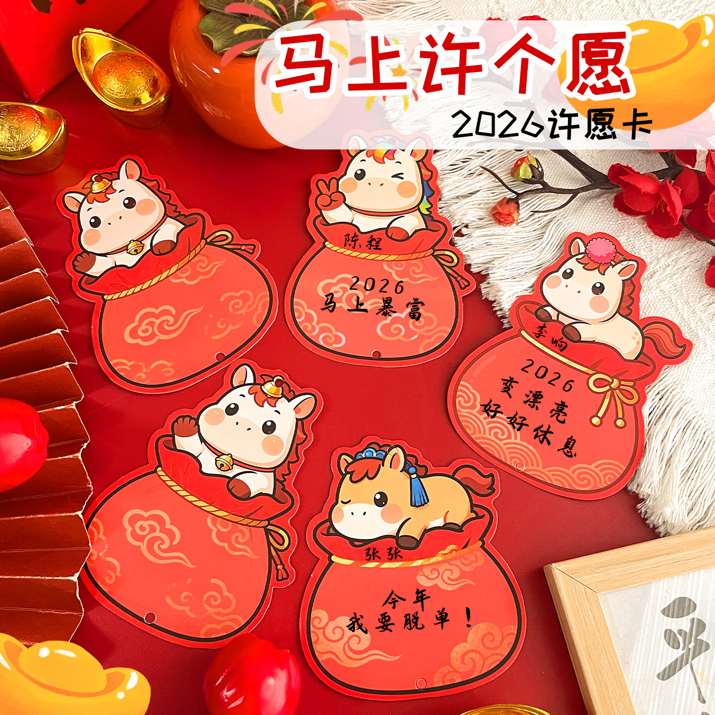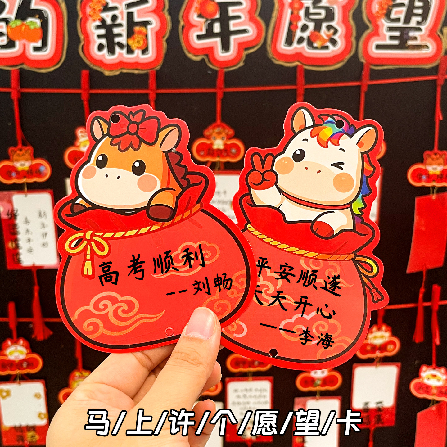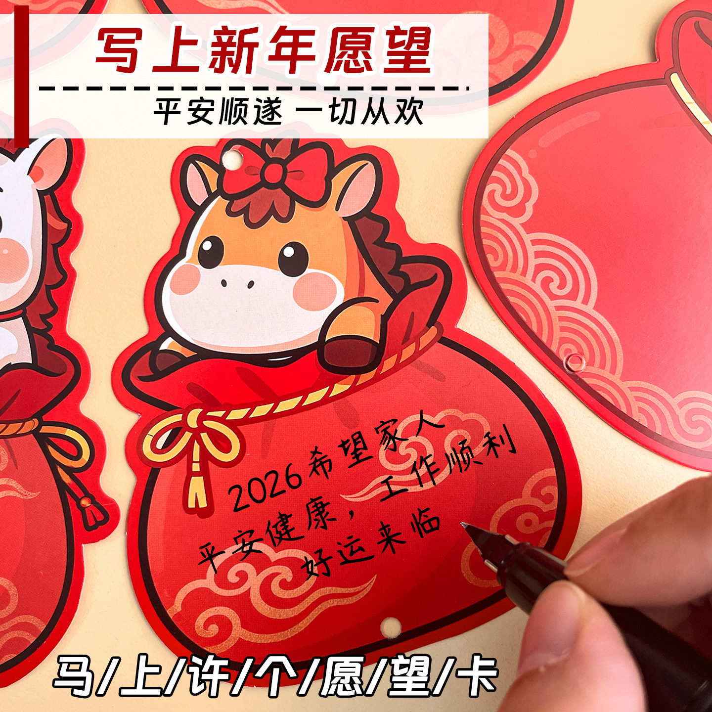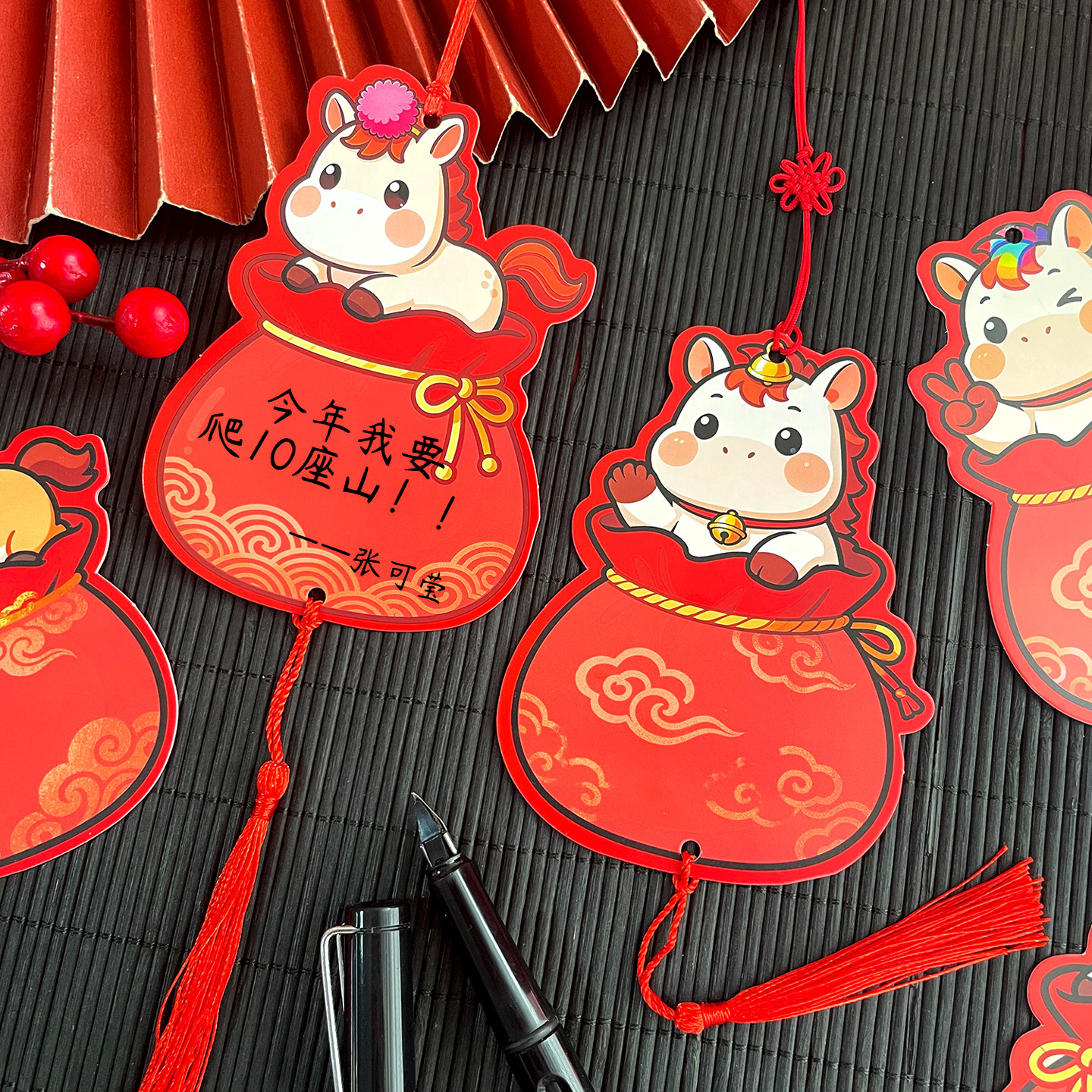 幼儿园新年愿望墙许愿卡马年福袋挂饰班级环创氛围布置悬挂装饰儿童小学生空白可手写目标心愿卡片祝福卡吊牌