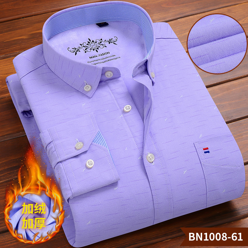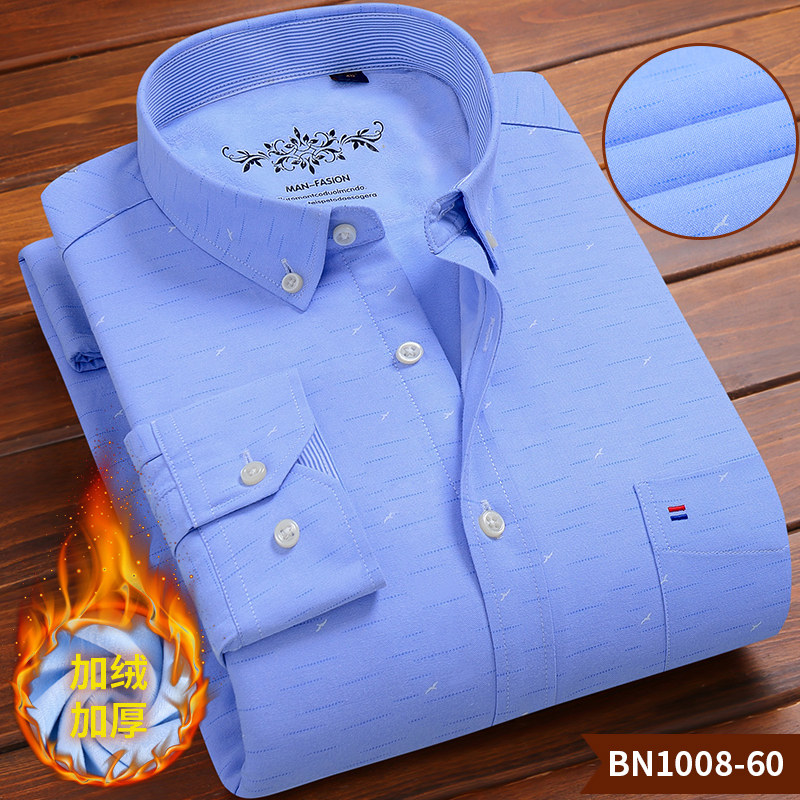 冬季新款男士加绒加厚牛津纺保暖衬衫中青年长袖格子带绒衬衣男装