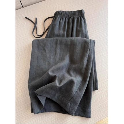 复古天丝亚麻阔腿裤女夏季新款棉麻裤子大码宽松显瘦直筒休闲长裤
