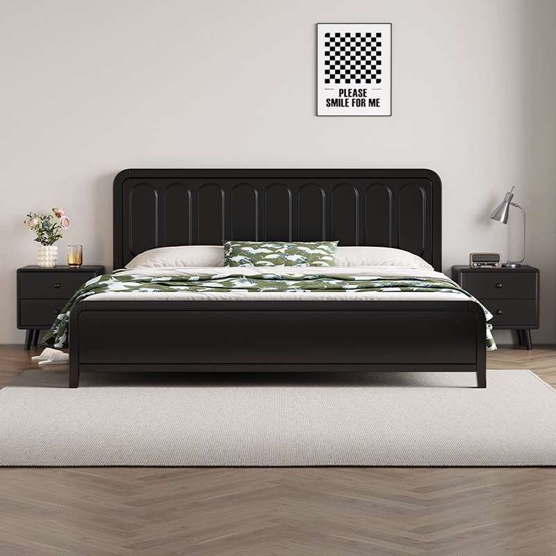 北欧黑色全实木床现代简约复古风格1.8米双人床1.5主卧公主储物床