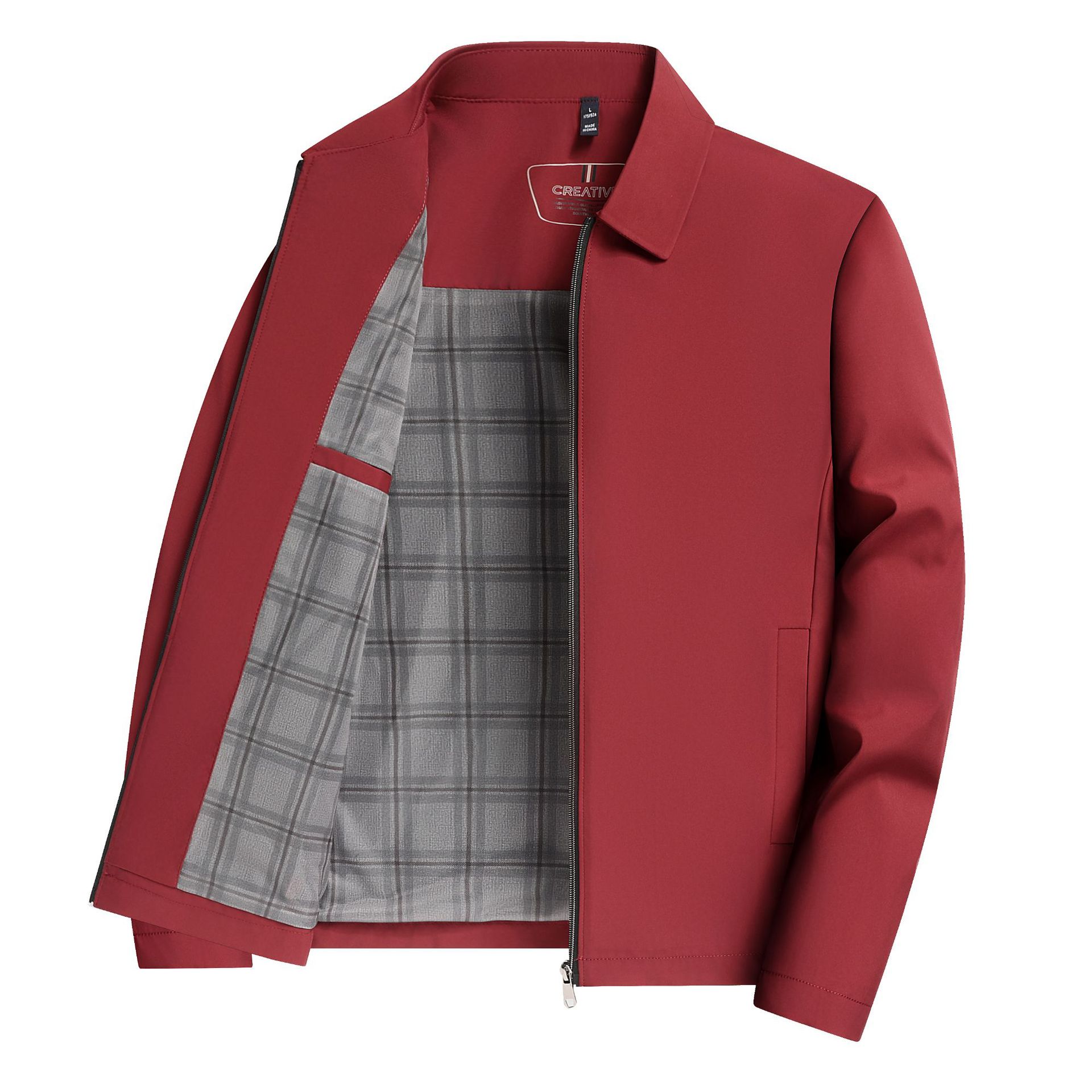 日本品质休闲翻领商务夹克男中年爸爸装秋季新款高档纯色拉链男士