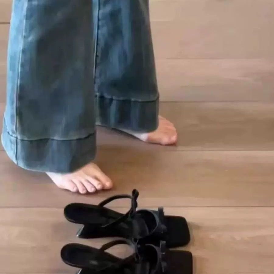 法式蝴蝶结方头坡跟凉鞋女2025夏新款仙女配裙子一字带高跟鞋外穿
