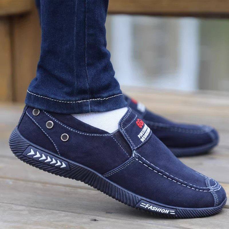 帆布鞋男老北京布鞋透气防臭懒人一脚蹬爸爸百搭休闲鞋男防滑板鞋