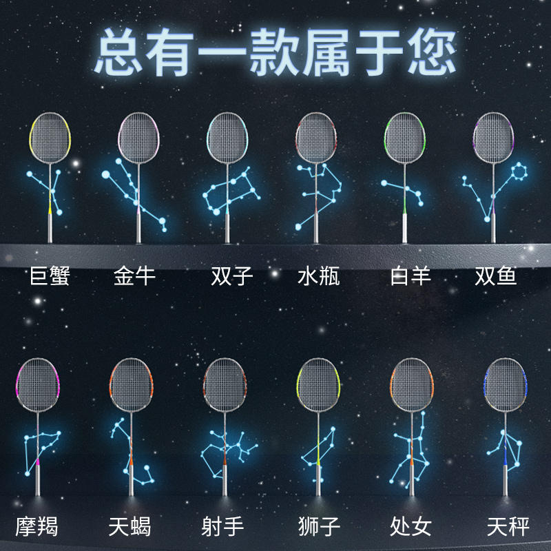 十二星座羽毛球拍套装双拍耐用型全碳素超轻单成人耐打正品专业