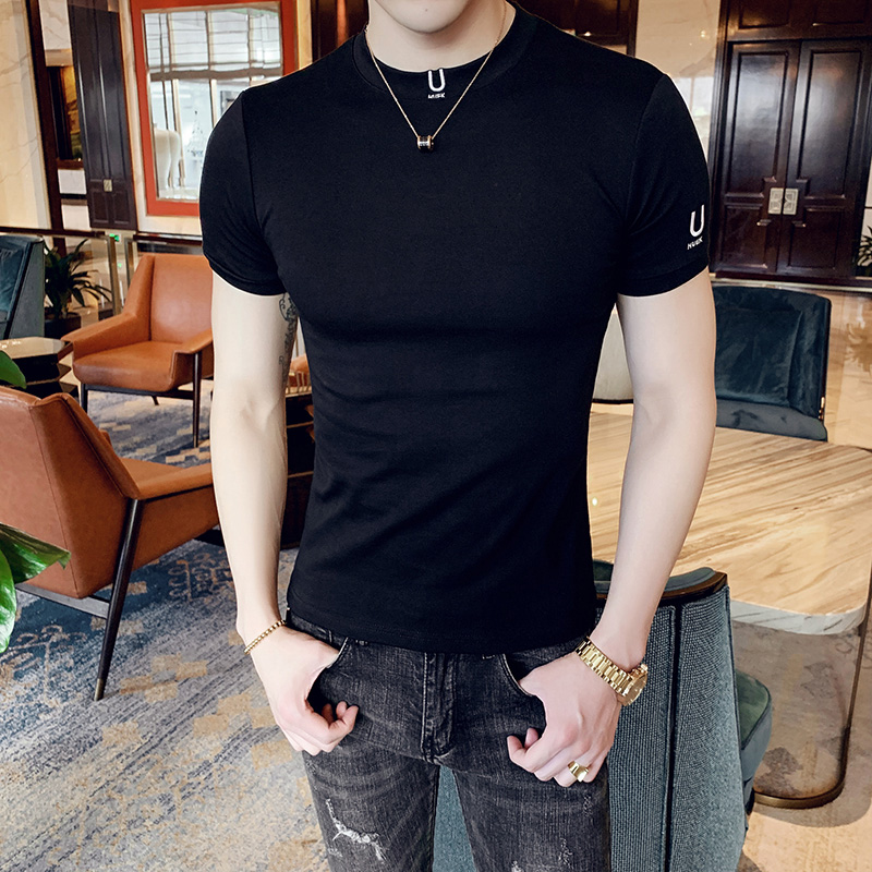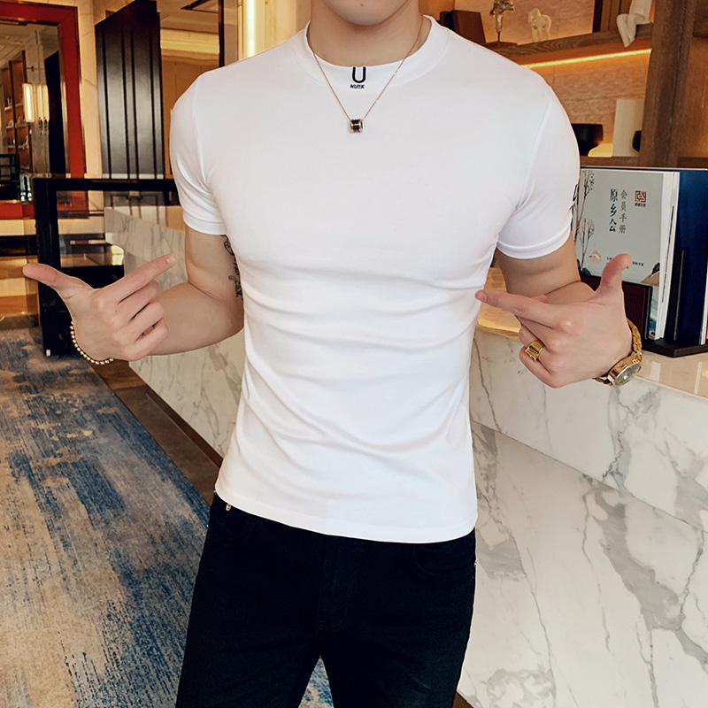 夏季男士短袖t恤韩版半袖修身打底衫潮流紧身纯棉体恤潮牌衣服男