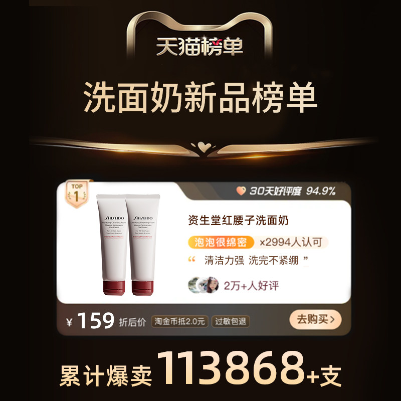 日本资生堂红腰子洗面奶女士洁面乳清洁毛孔控油皮官方正品*2支装