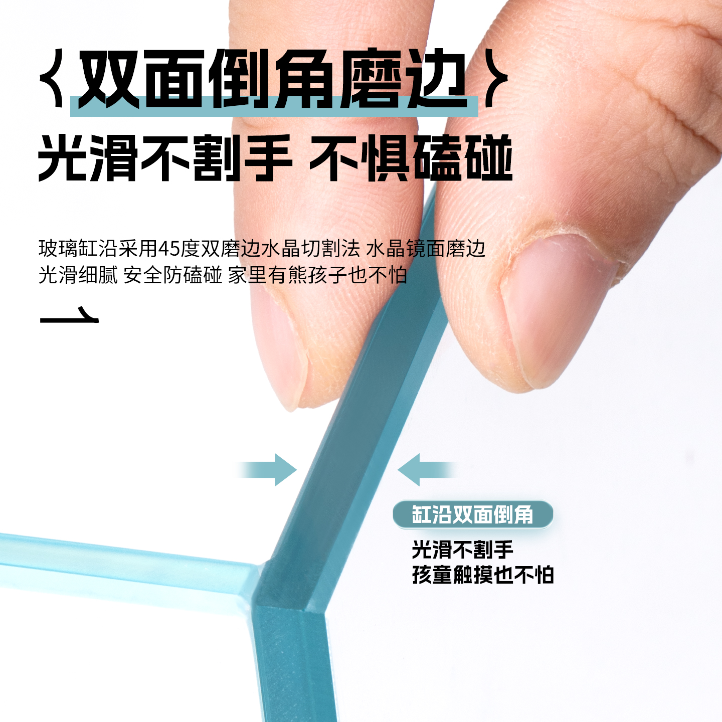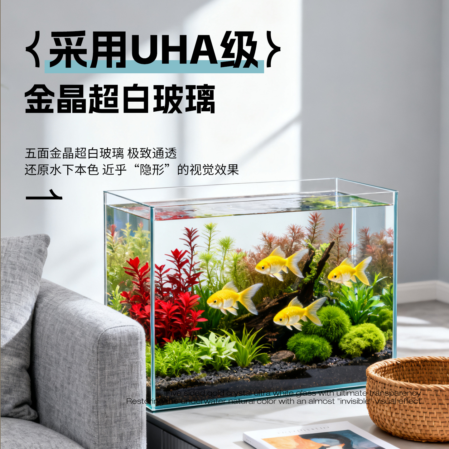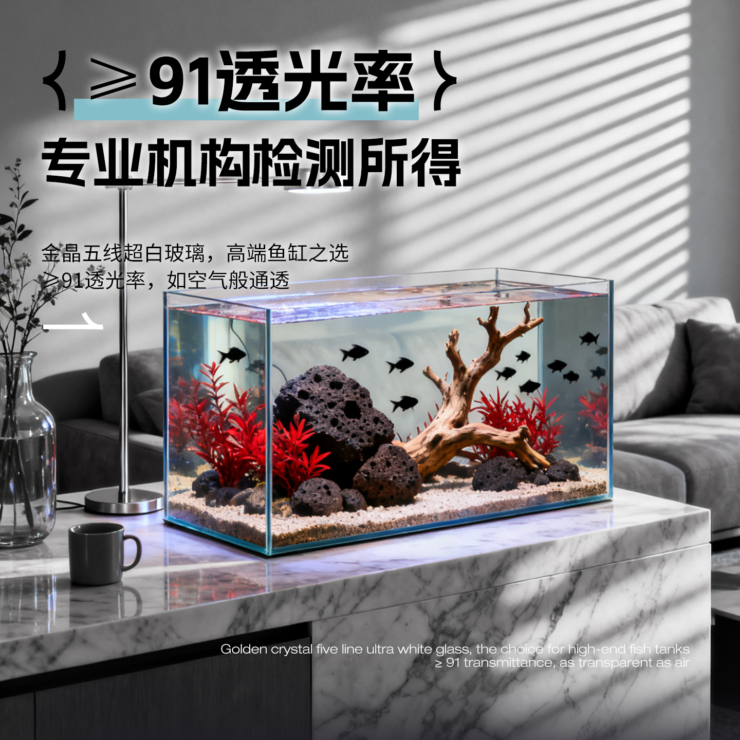超白玻璃鱼缸金晶五线小型家用客厅桌面新款生态斗金养鱼乌龟裸缸
