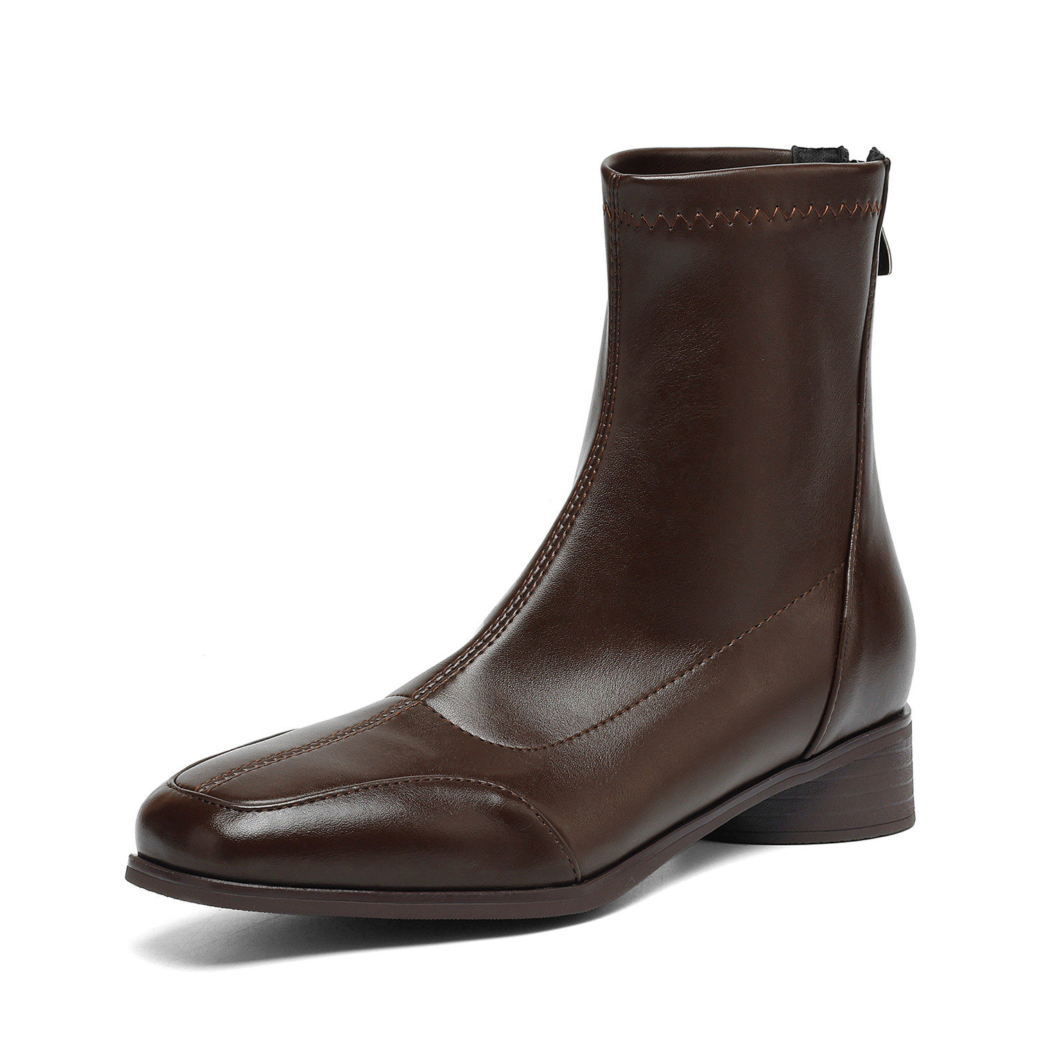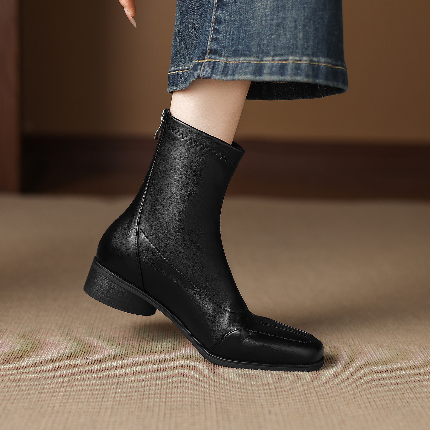 粗中跟后拉链弹力瘦瘦短靴女