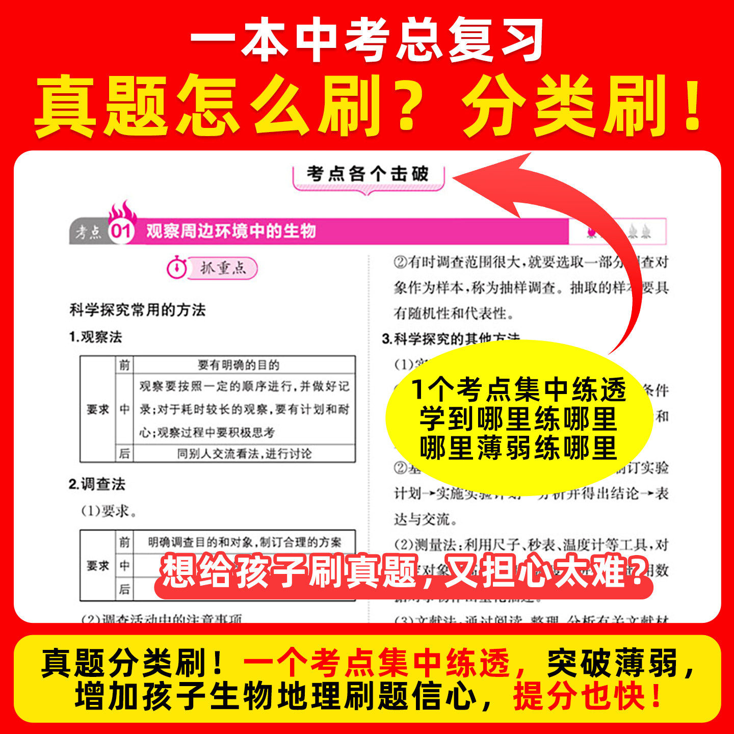 生地会考2026一本生地会考真题初二地理生物中考训练方案真题分类总复习八年级上下册人教新课标教材资料辅导专项初中生小四门2025