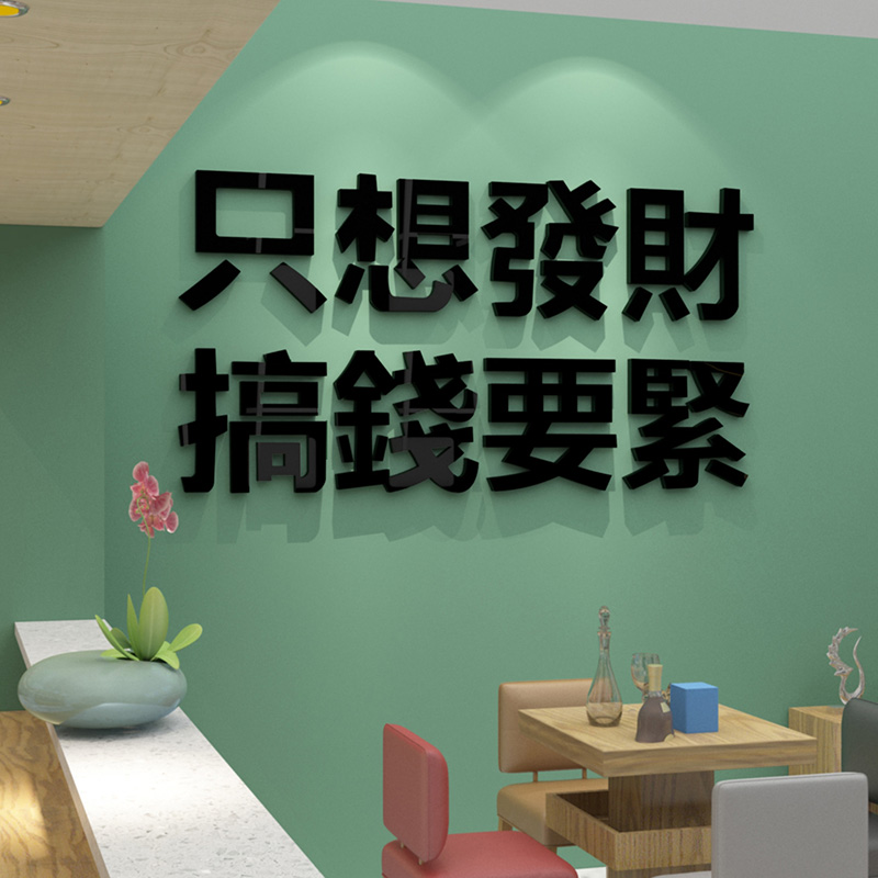 发财文字创意搞笑贴纸餐厅饭店主题布置装饰小吃店奶茶店背景墙贴
