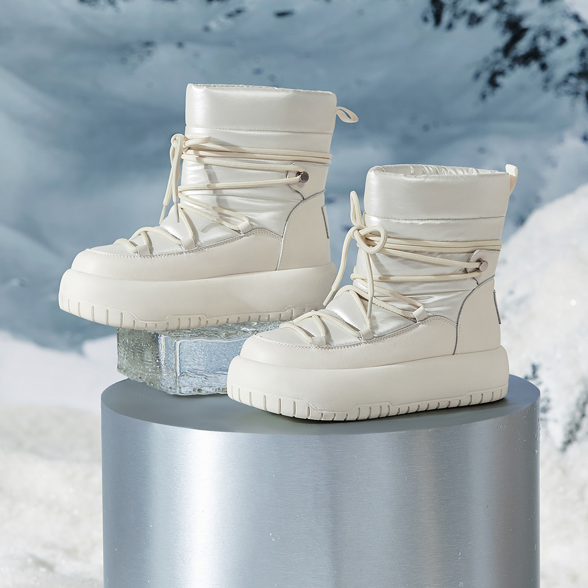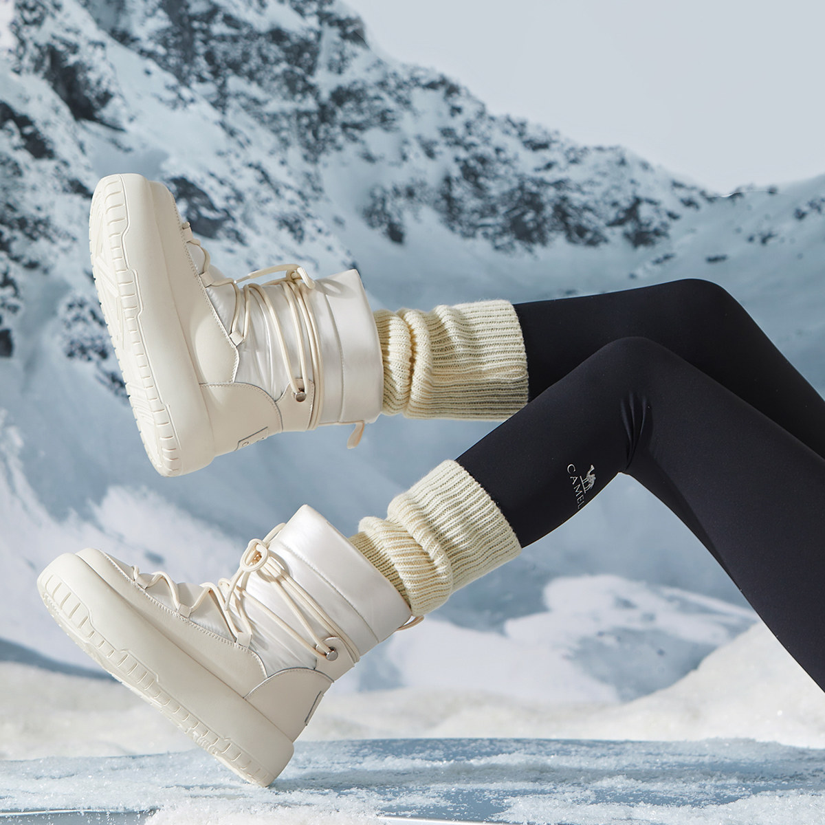 骆驼女鞋2024冬新款厚底雪地靴女加绒加厚东北户外保暖中筒棉鞋女