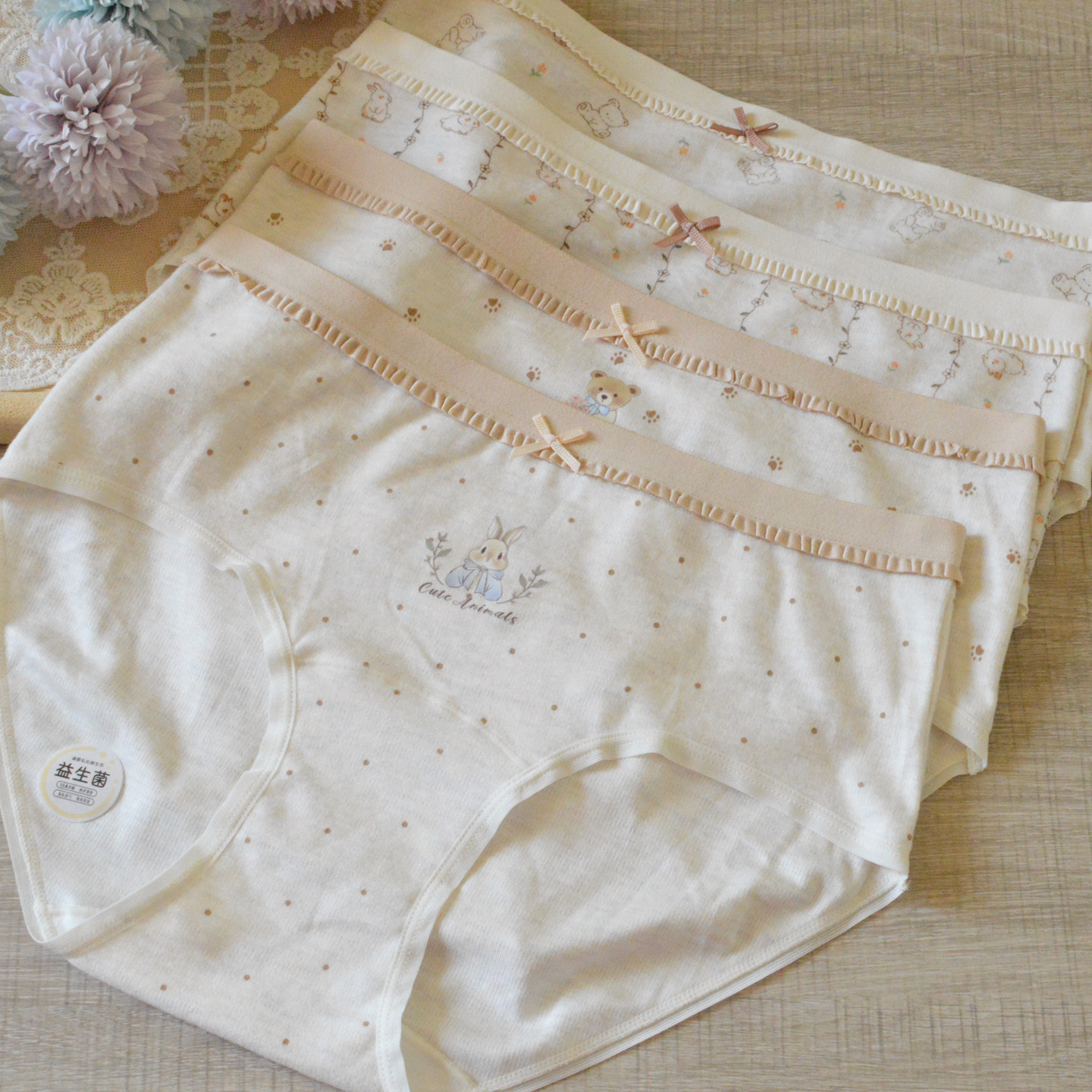 磨毛彩纱女内裤可爱兔子熊加长裆